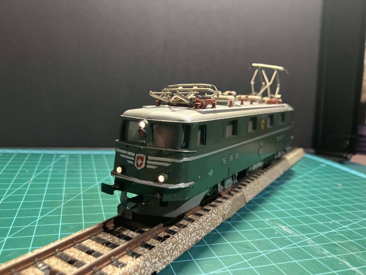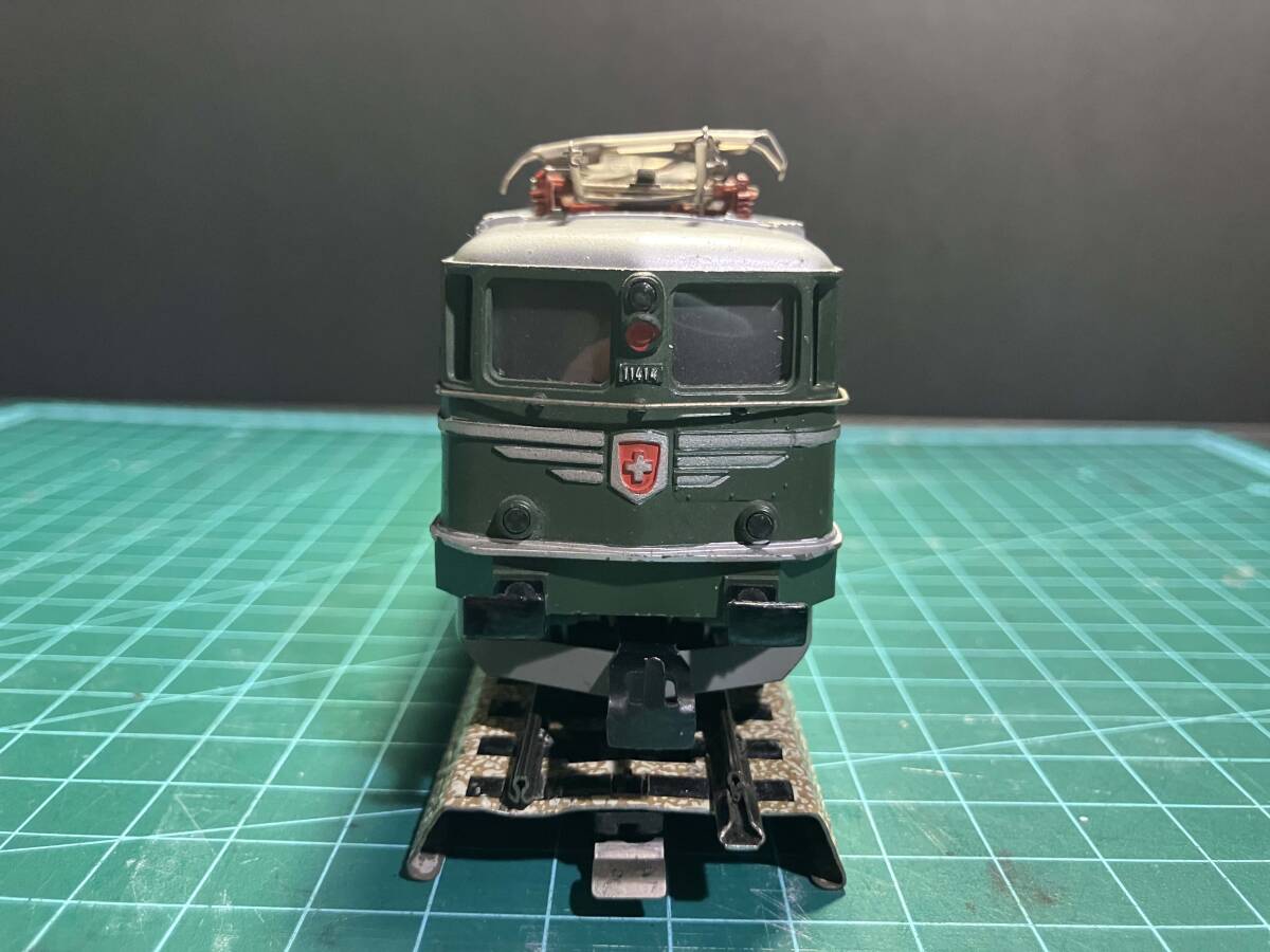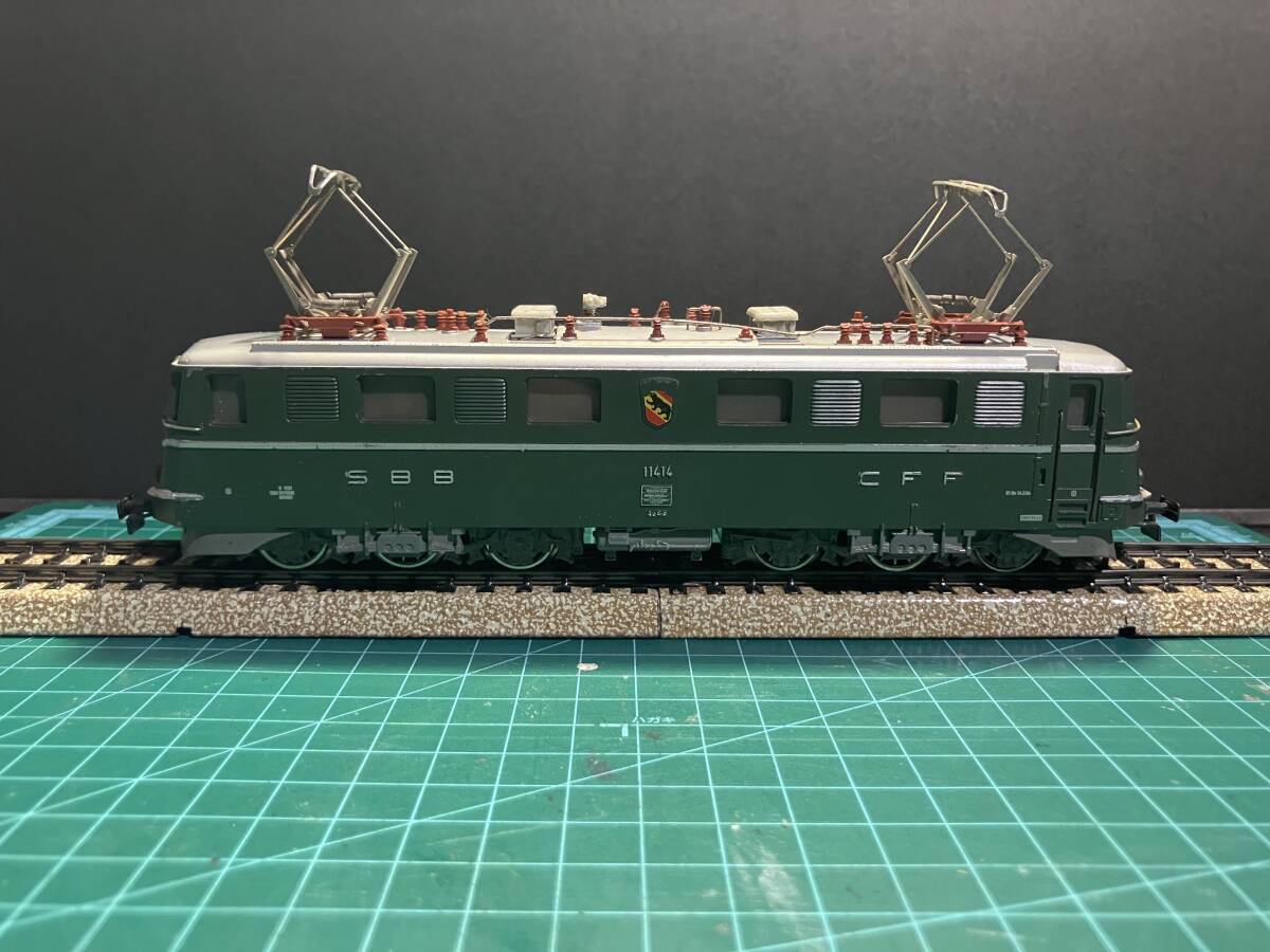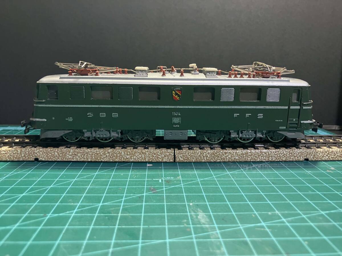 メルクリン Marklin 3050 Electric locomotive Ae 6/6 スイス。車体の清掃、注油、モーター、車輪など基本的なメンテナンスは行いました。メルクリン製のアナログトランス、レールにて前後走行、リレーの動作を確認しました。ライトの点灯も写真1枚目の通りに確認しております。元箱なし。写真のレールは付属しません。