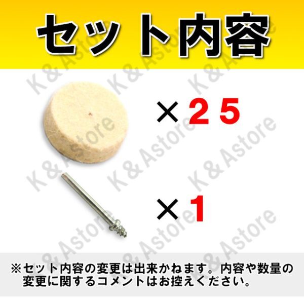 【匿名配送】軸付きフェルトホイール 鏡面仕上げ バフ掛け 研磨 ミニルータービット ホビーューター 電動ピンバイス ドリル 円筒25㎜ 25個