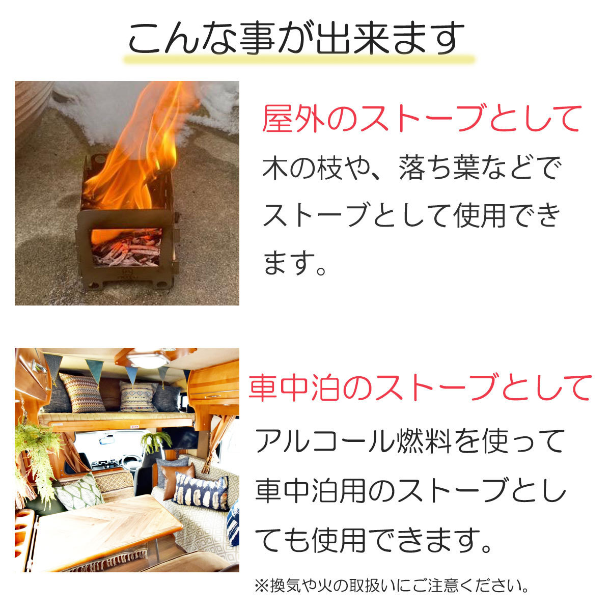 底面とサイドパネル上部2箇所に通気窓があるので、燃焼源を効率よく燃やし、コンパクトながら十分な火力を得ることが出来ます。