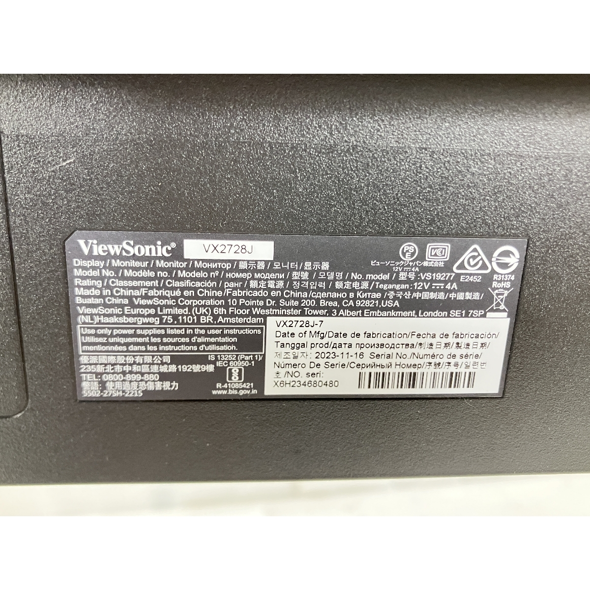 View Sonic VX2728J 2023年製 27インチ ゲーミングモニター ディスプレイ ビューソニック 家電 中古 W10279192 |