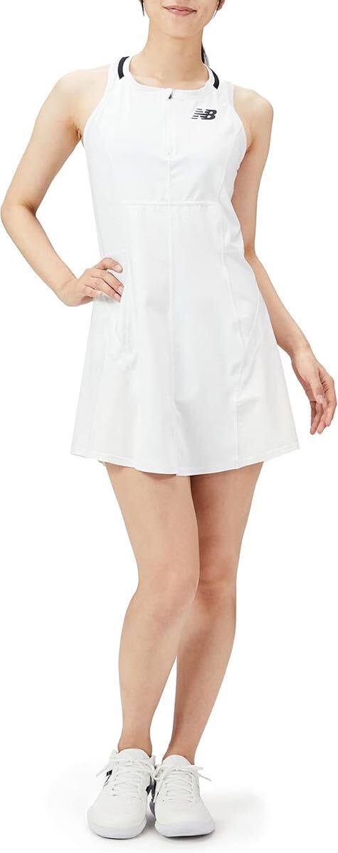 *サイズ XL(バスト94-102 身長165-170) *色 白 *素材 ポリエステル ポリウレタン ■NB契約選手が四大大会で着用予定のトーナメントドレスです。前身頃はネックホルダーまで一体化したストレッチ素材を採用し、胸元ファスナーで仕上げました。肩甲骨周りをオープンにしたバックスタイルは、スカート部を軽量なストレッチウーブン素材で切替えエレガントに演出しました。環境にやさしいリサイクルポリエステルを使用したサステナビリティプログラム対象商品です。 |