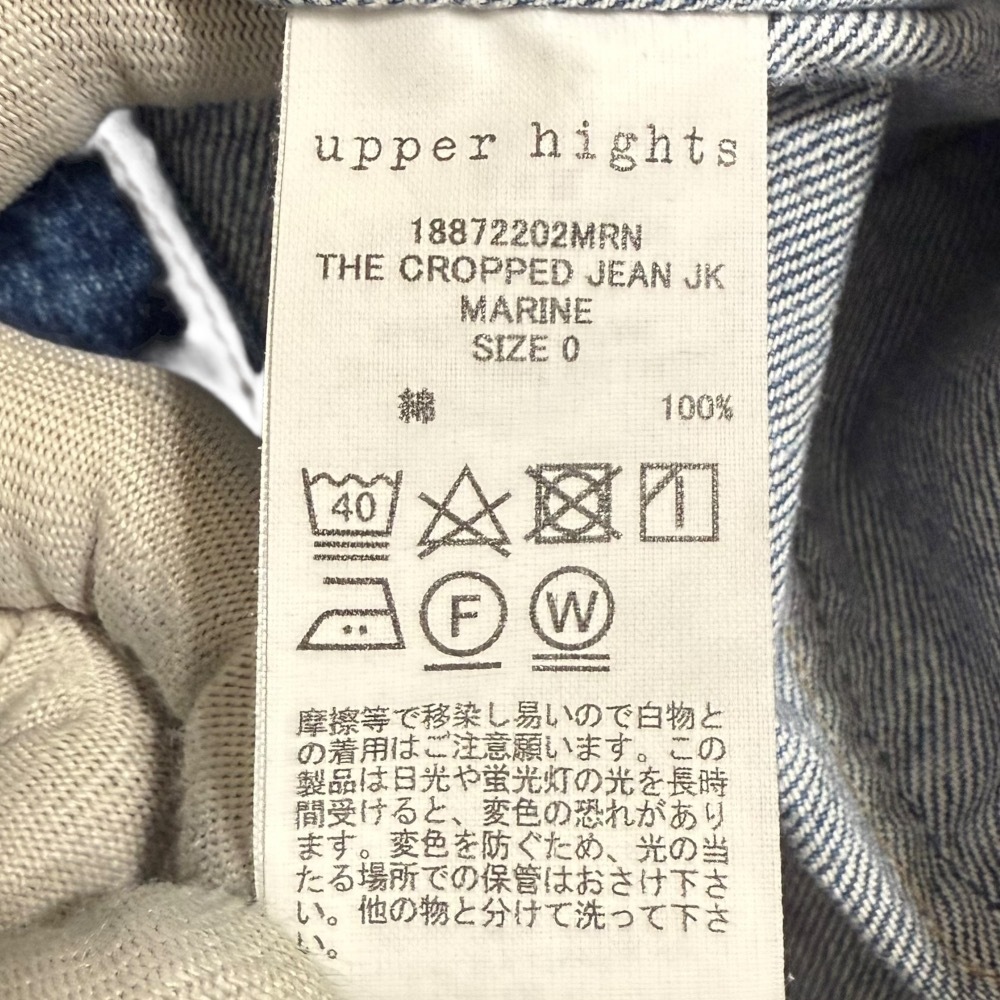 美品 upper hights アッパーハイツ THE CROPPED JEAN JK クロップド デニムジャケット Gジャン ブルゾン 0 インディゴブルー