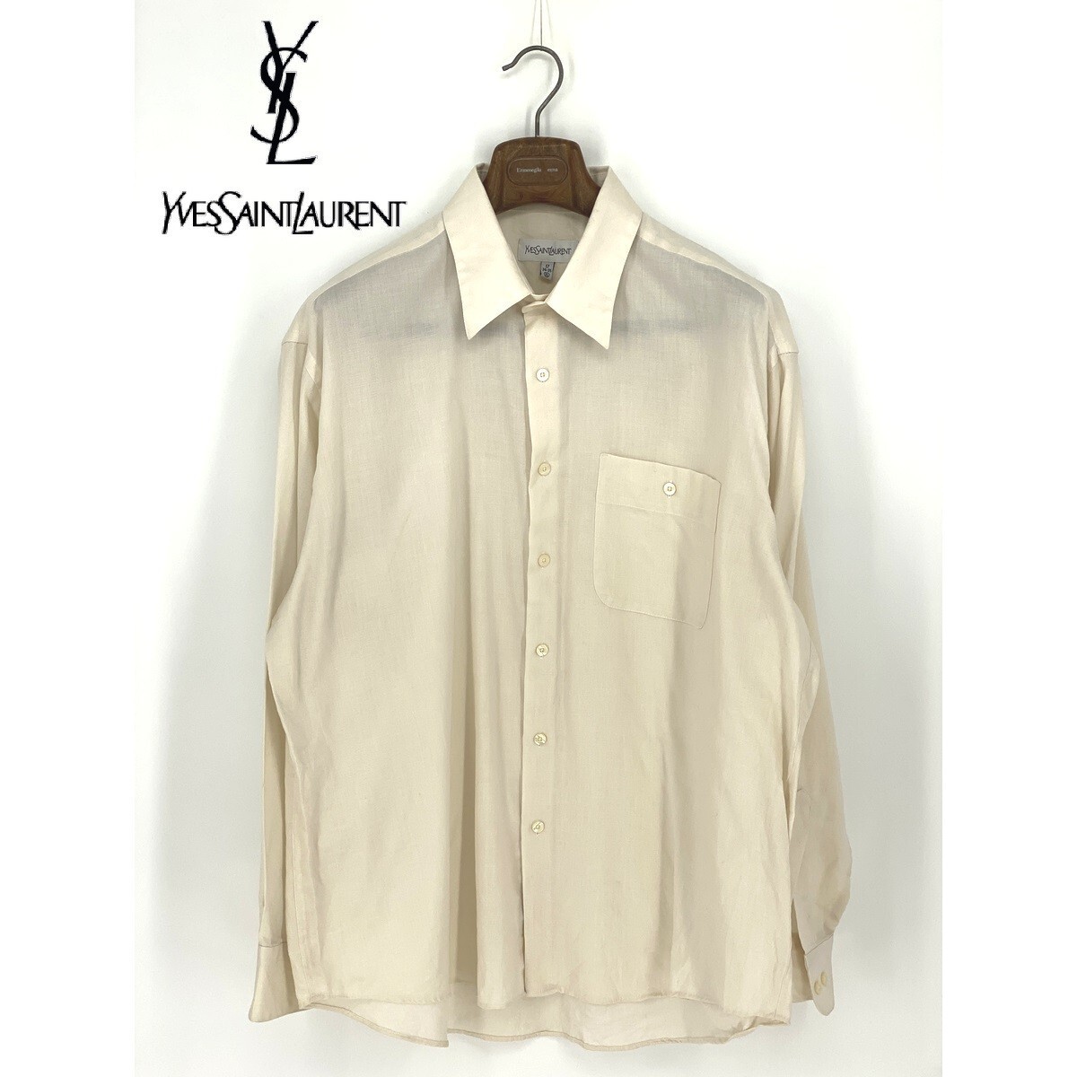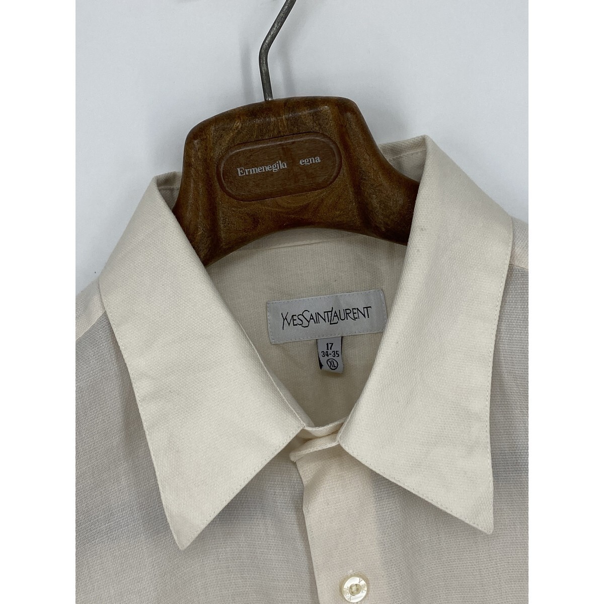 B0828/ビンテージ 90s Yves Saint Laurent イヴサンローラン コットン 長袖 ドレス カッター Yシャツ 17 34-35 XL 白 メンズ スーツ用