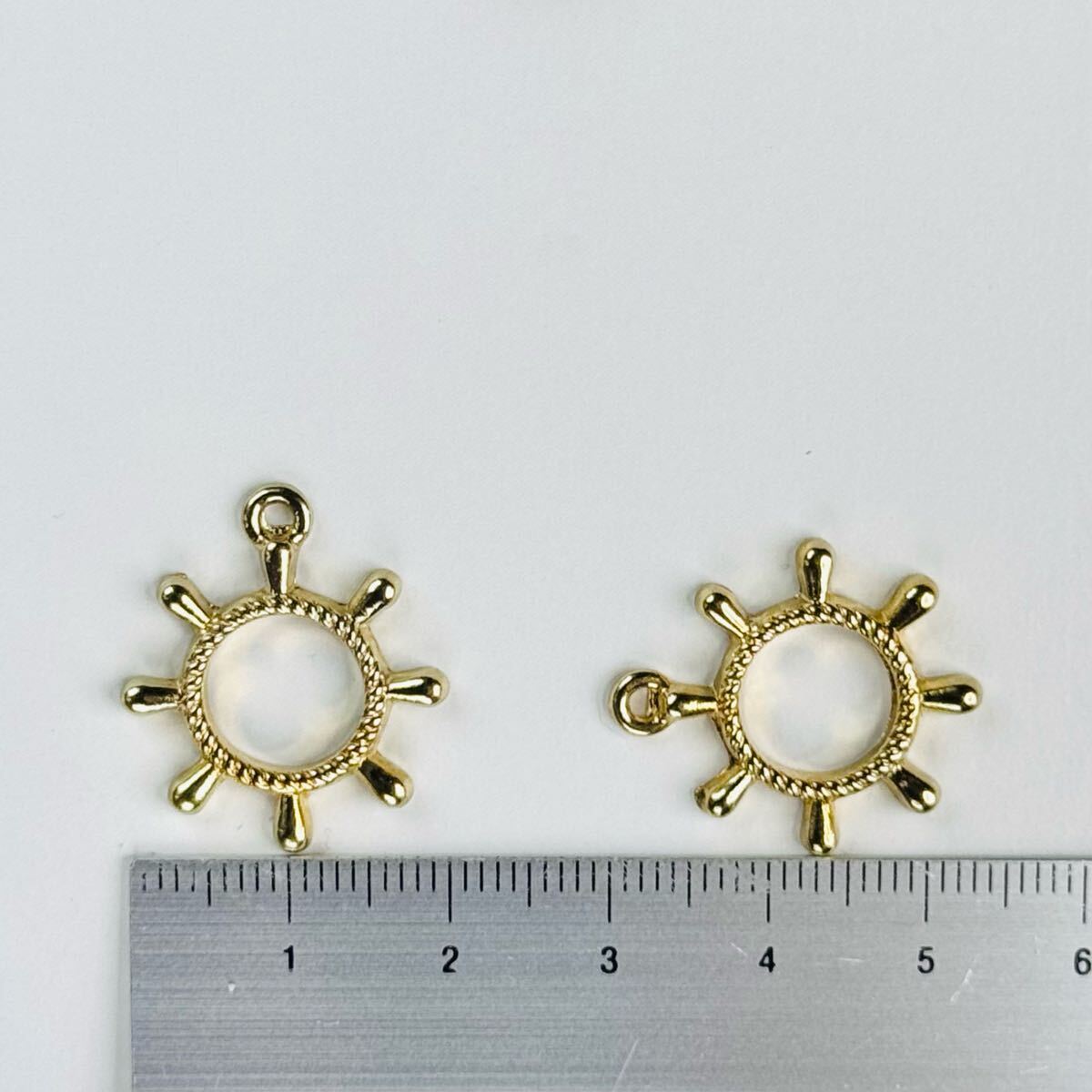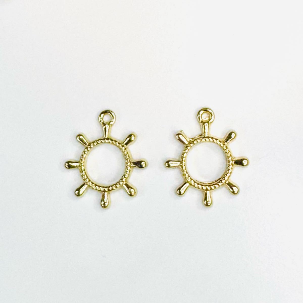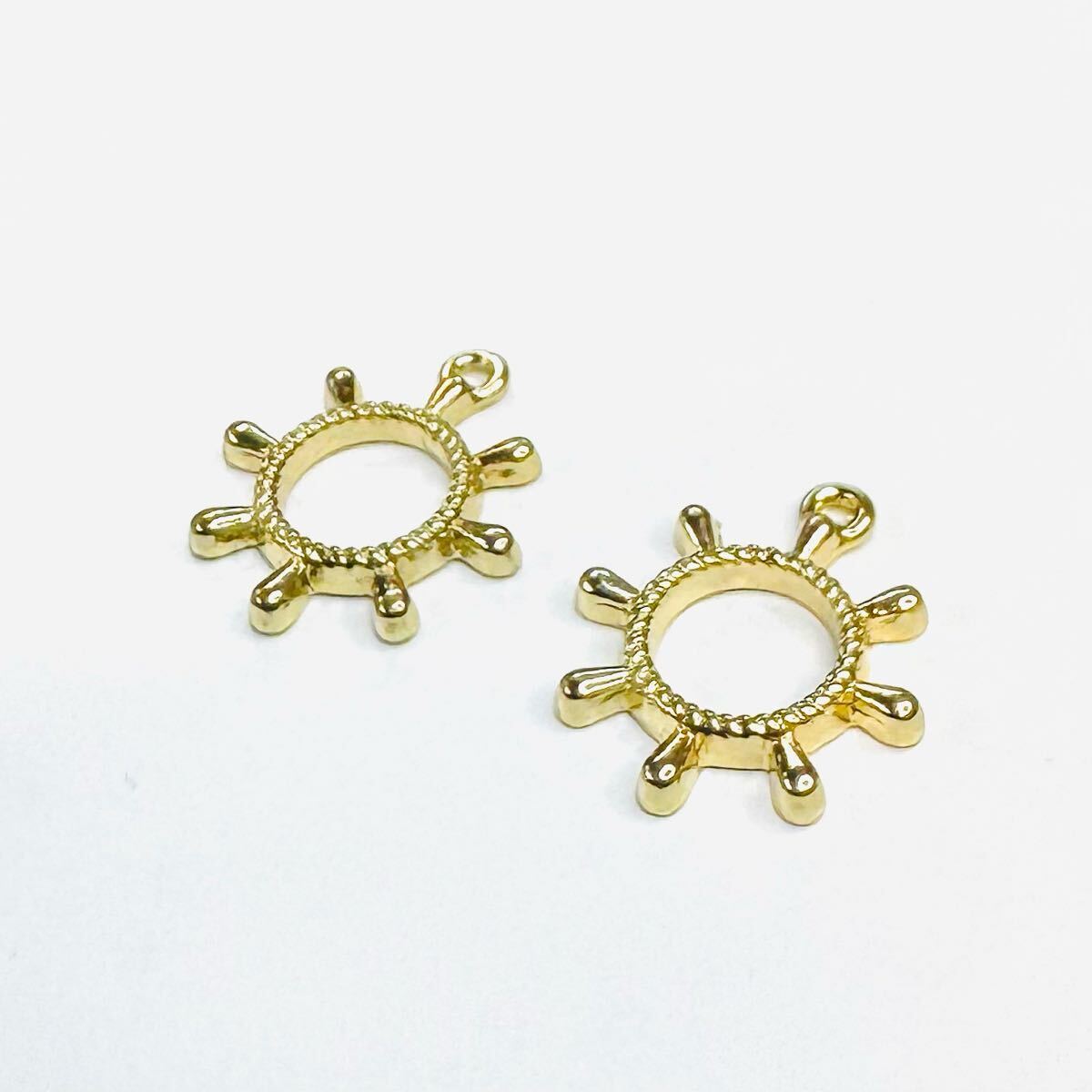 舵輪 ラダー マリン チャーム 空枠 fm ゴールド 2個