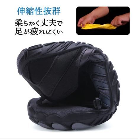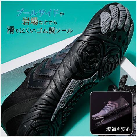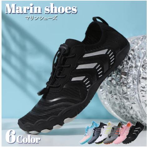 こちらは、水陸両用で使える高機能マリンシューズです。海や川でのレジャー、プール、シュノーケリングはもちろん、フィットネスや筋トレ、ヨガなどの室内アクティビティにも最適です。