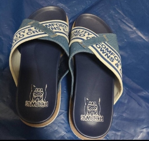 デニム風のスライドサンダル、快適な履き心地。