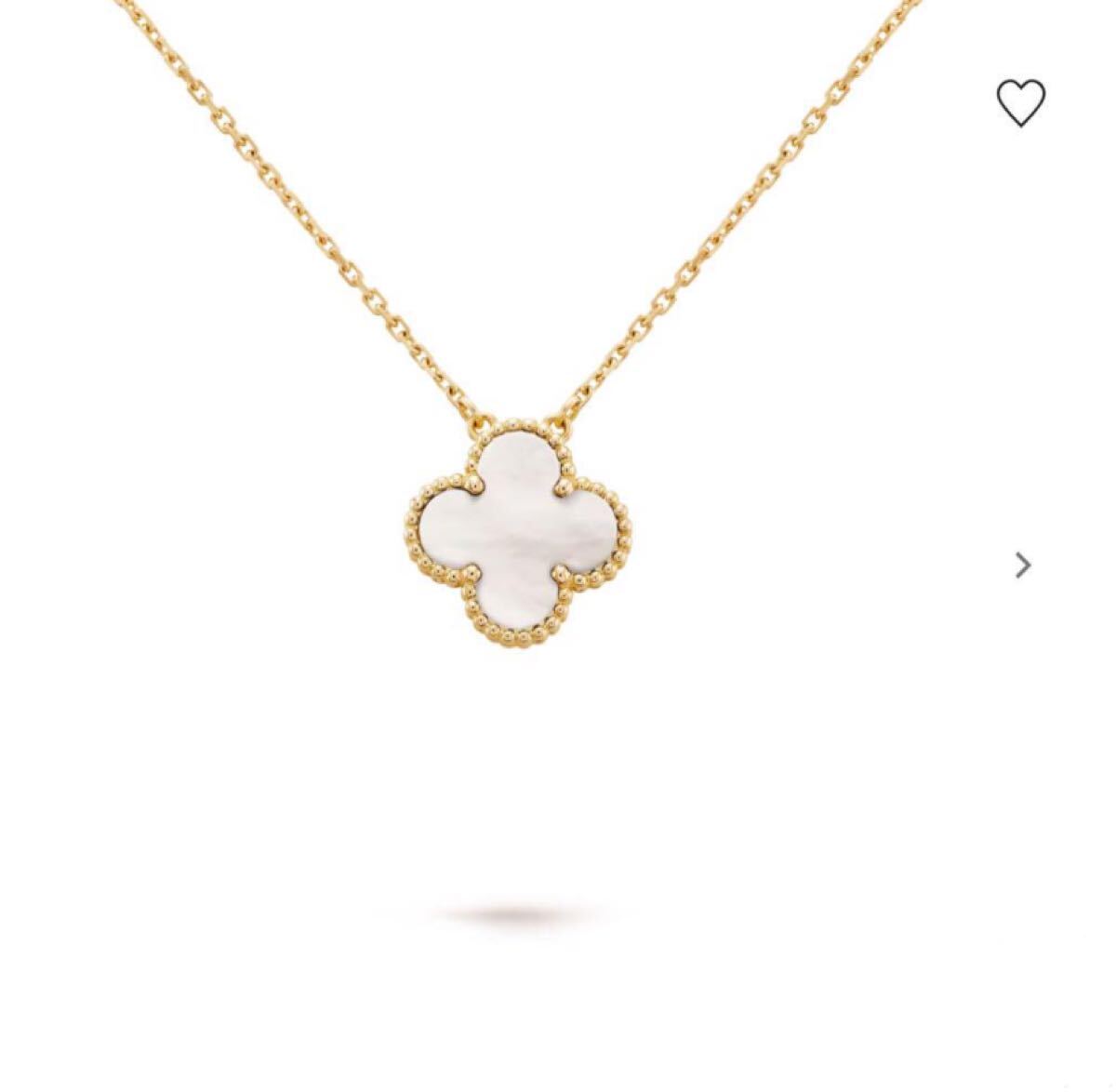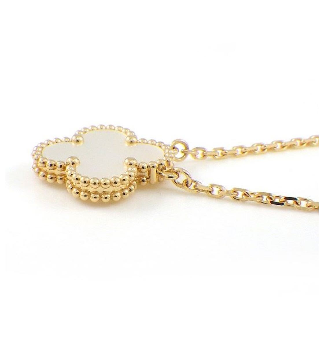 ホワイトマザーオブパールの四つ葉デザインネックレス、ゴールドチェーン