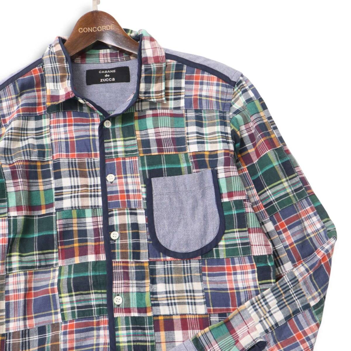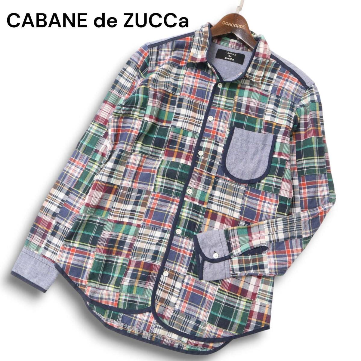 CABANE de ZUCCa カバンド ズッカ 通年★ チェック パッチワーク パイピング 切替 長袖 シャツ Sz.S メンズ