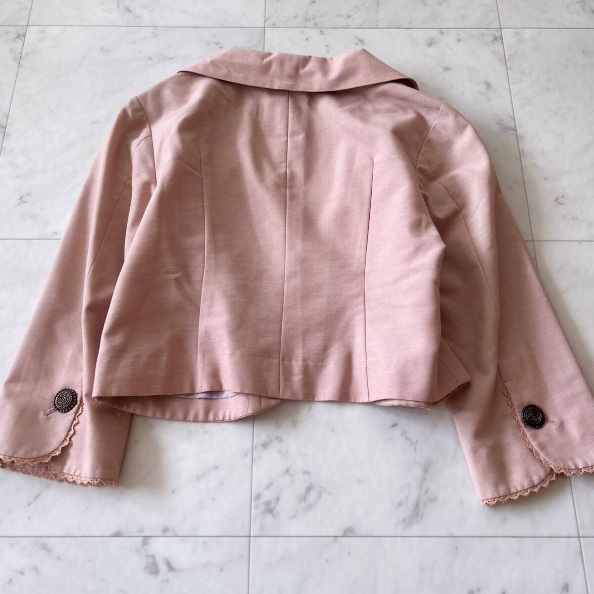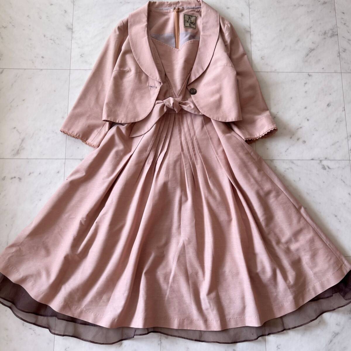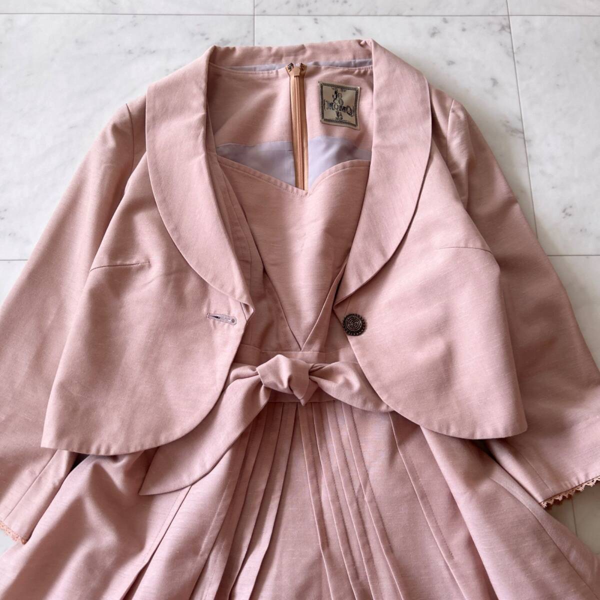 上品なピンクカラーが印象的な、ホコモモラのフォーマル2点セットアップです。ボレロ風ジャケットにビジューボタンが施され、袖口にはレースがあしらわれており、女性らしい華やかさを演出します。ワンピースはウエストリボン付きのフィット&フレアシルエットで、美しいラインを描きながら体型をすっきり見せてくれます。入学式や卒業式、結婚式などのセレモニーから特別なお食事会まで幅広く活躍する一着です。MADE IN JAPANの丁寧な仕立てで、安心して長くご愛用いただけます。