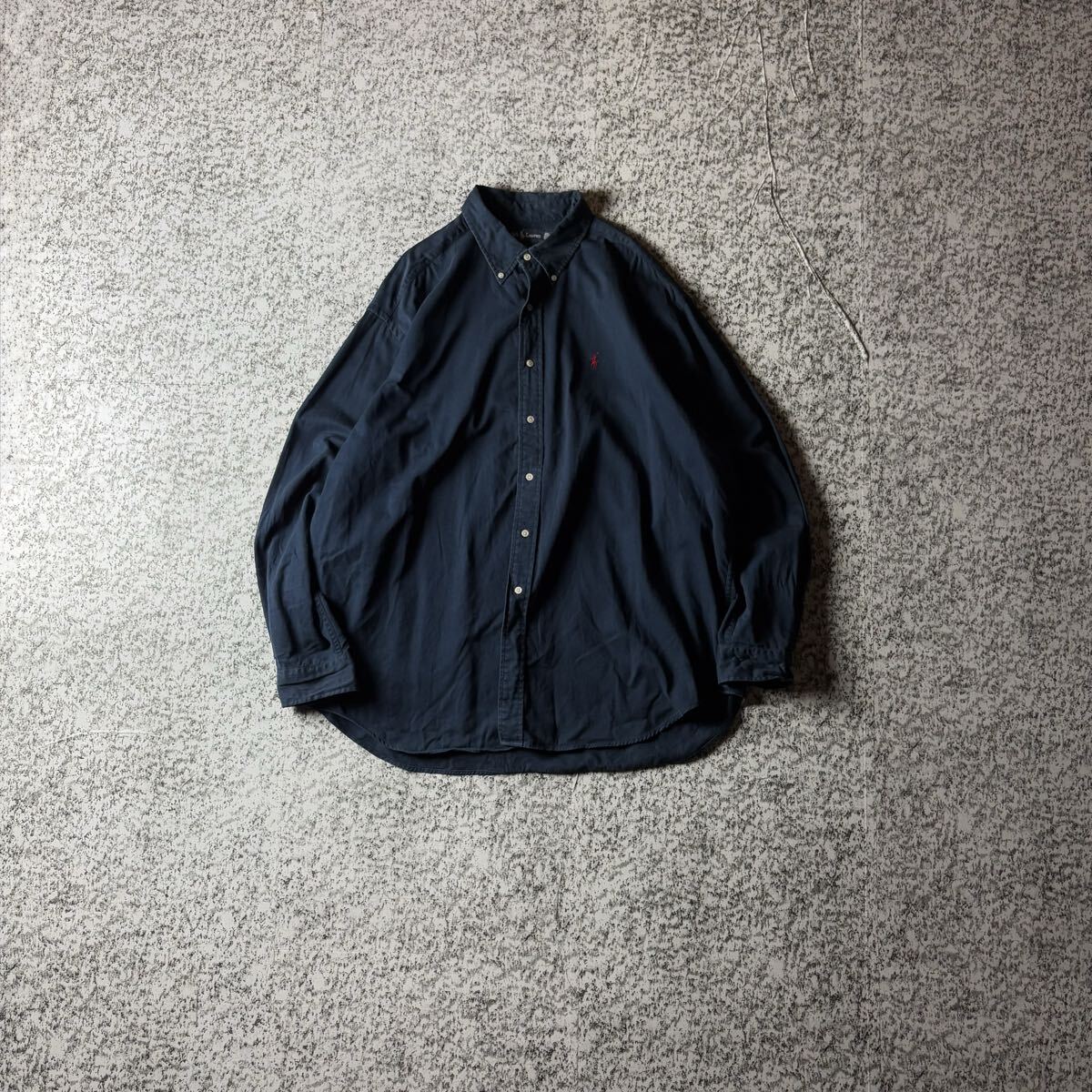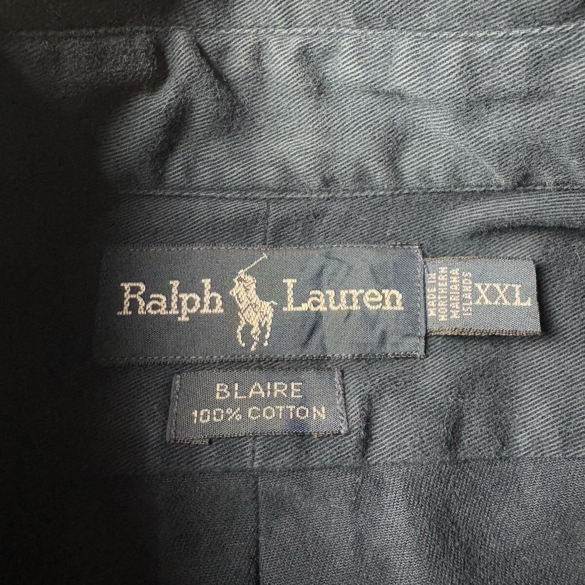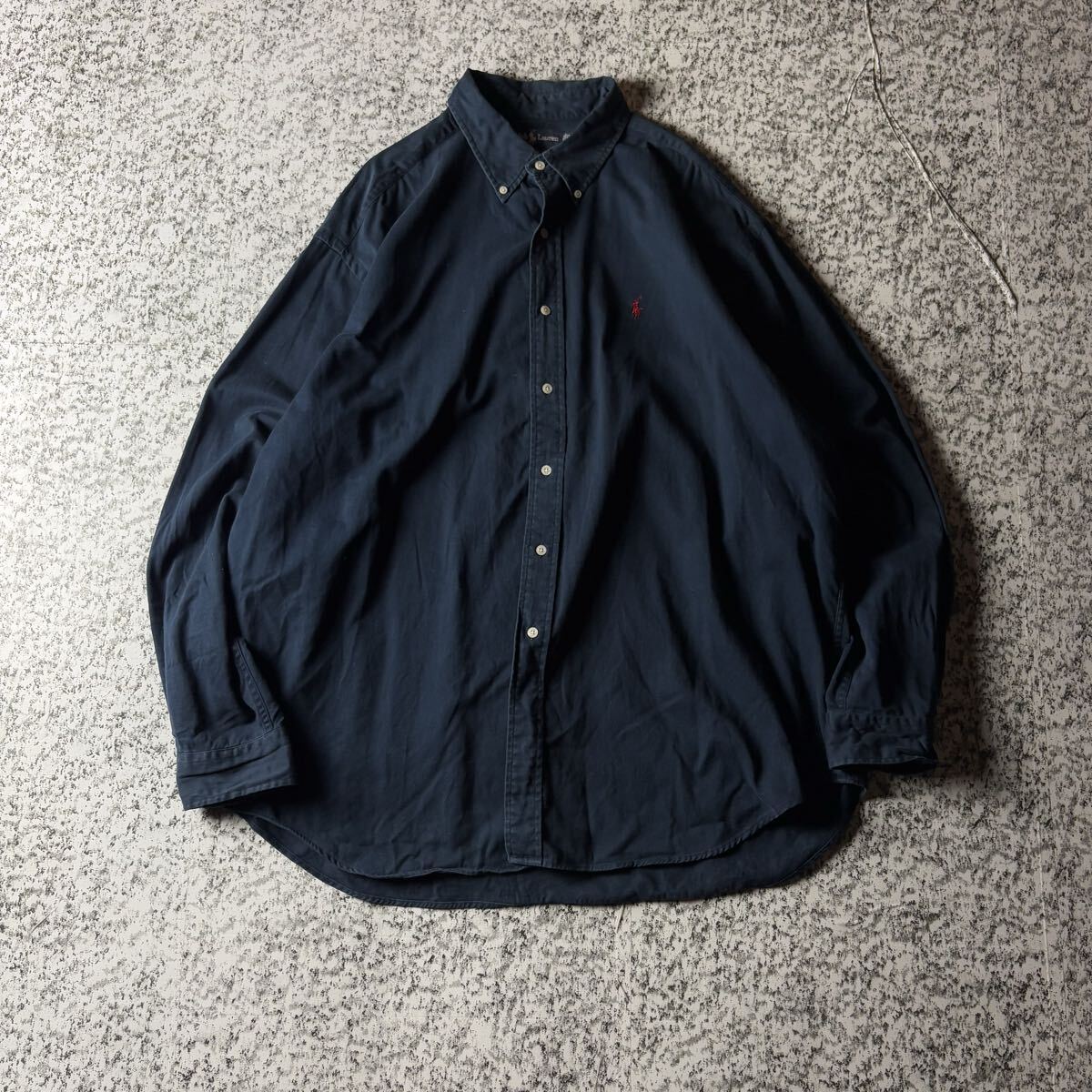 【90s USA製】ラルフローレン BLAIRE オーバーサイズL/Sシャツ ネイビー 2XLサイズ 古着 ボタンダウン 長袖シャツ