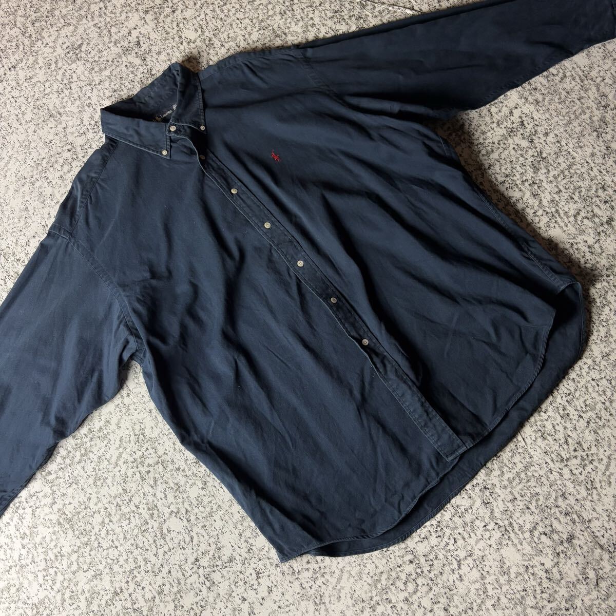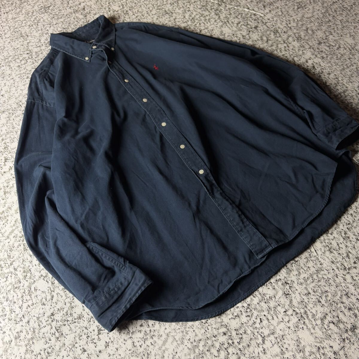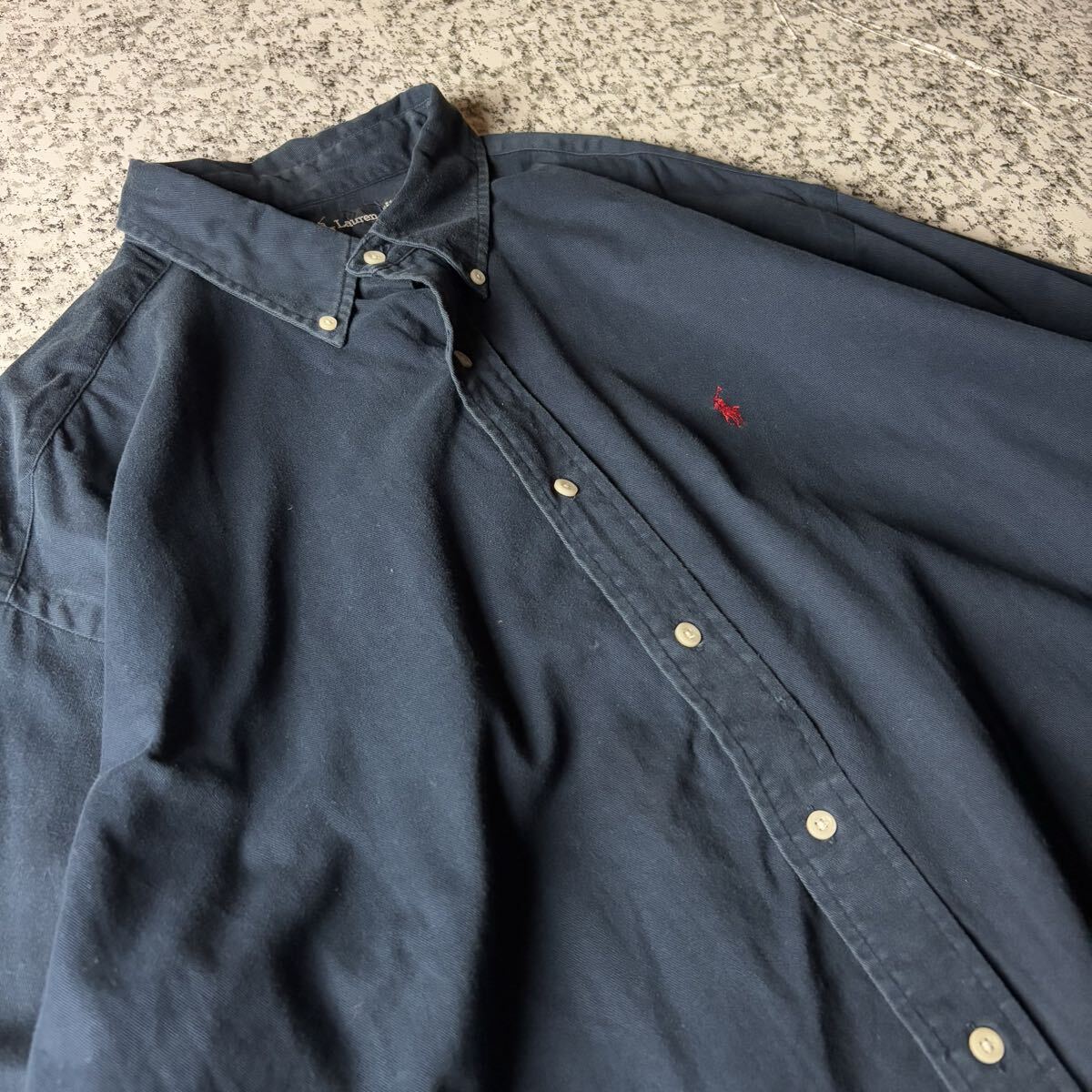 【90s USA製】ラルフローレン BLAIRE オーバーサイズL/Sシャツ ネイビー 2XLサイズ 古着 ボタンダウン 長袖シャツ
