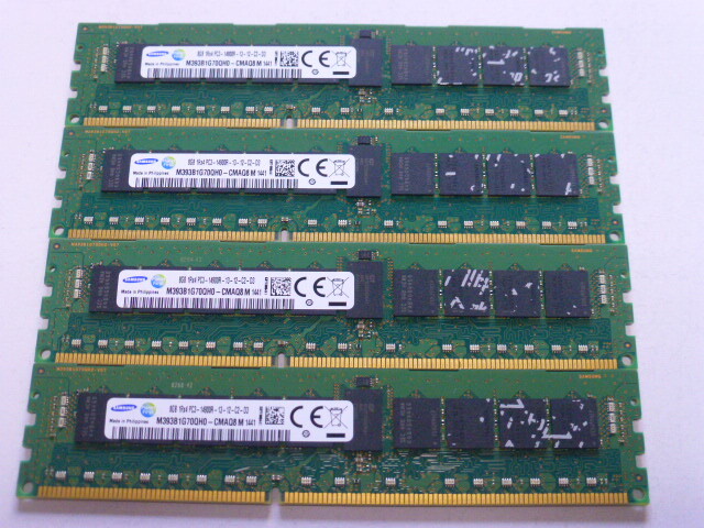 メモリ サーバーパソコン用 1.5V Samsung PC3-14900R(DDR3-1866R) ECC Registered 8GBx4枚 合計32GB 起動確認済です M393B1G70QH0-CMAQ8
