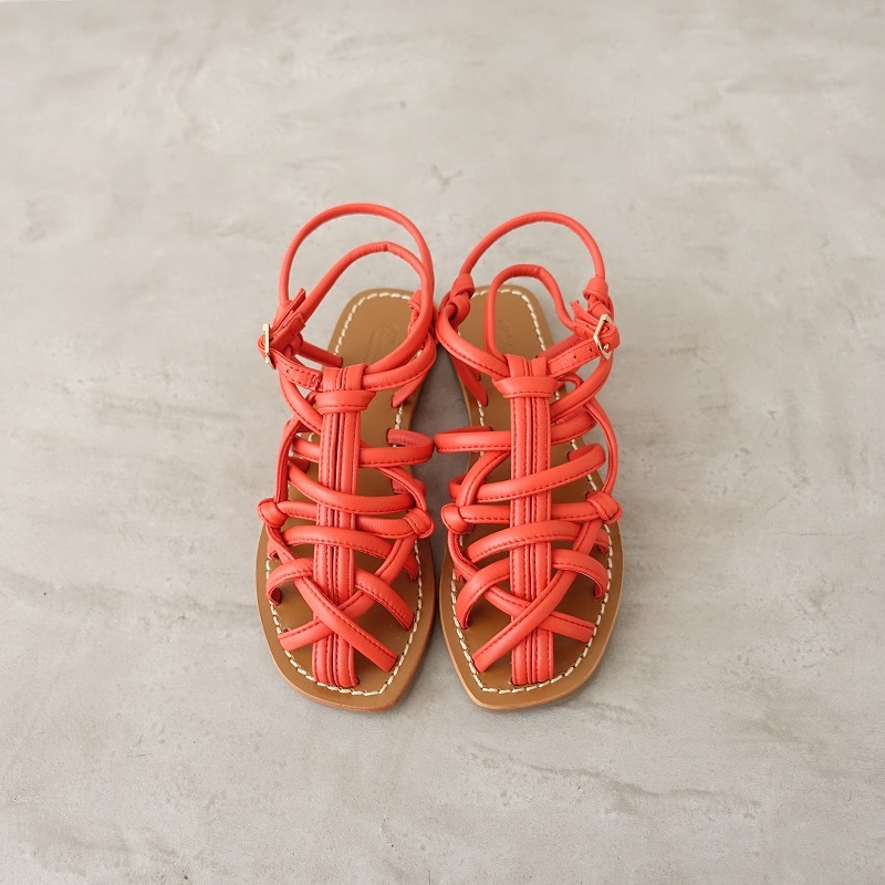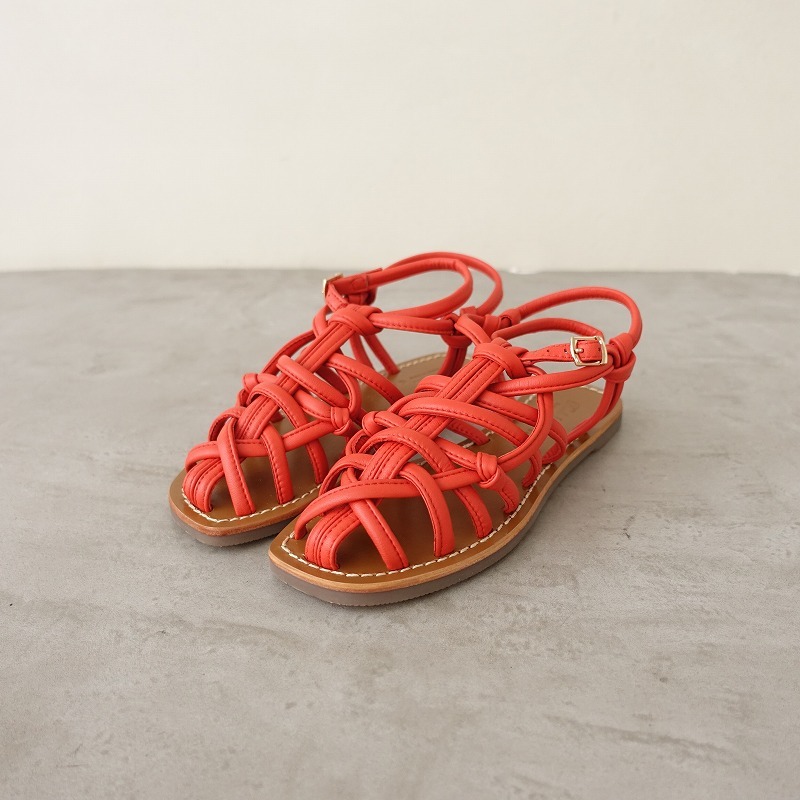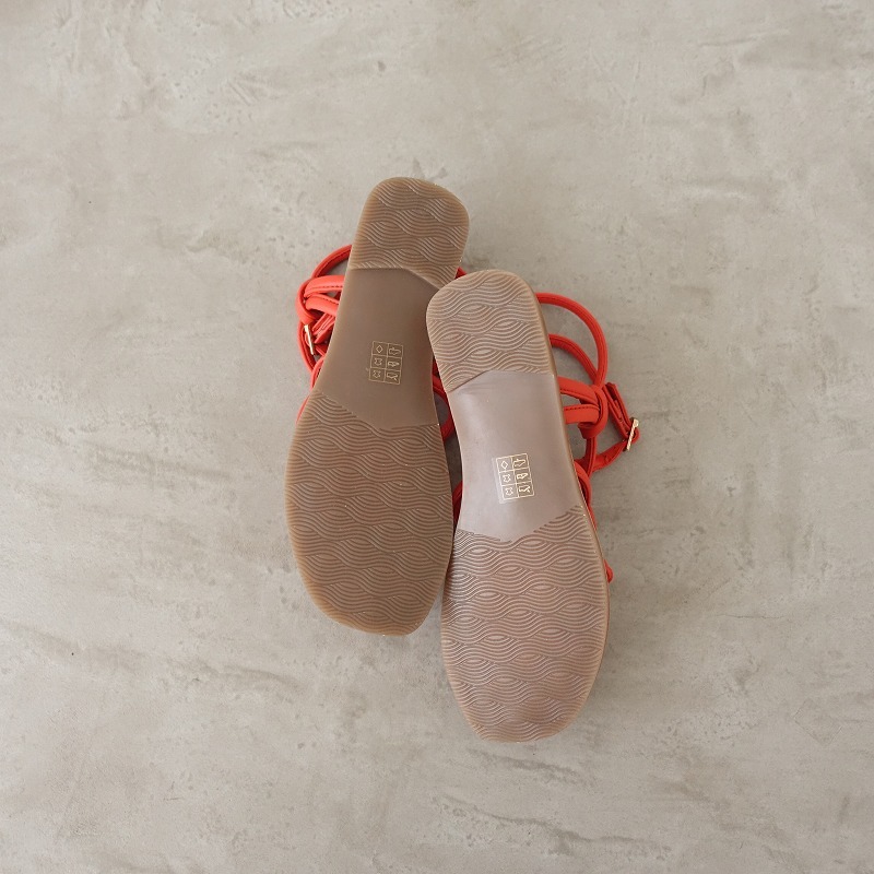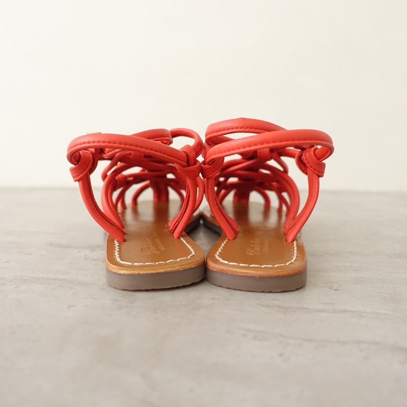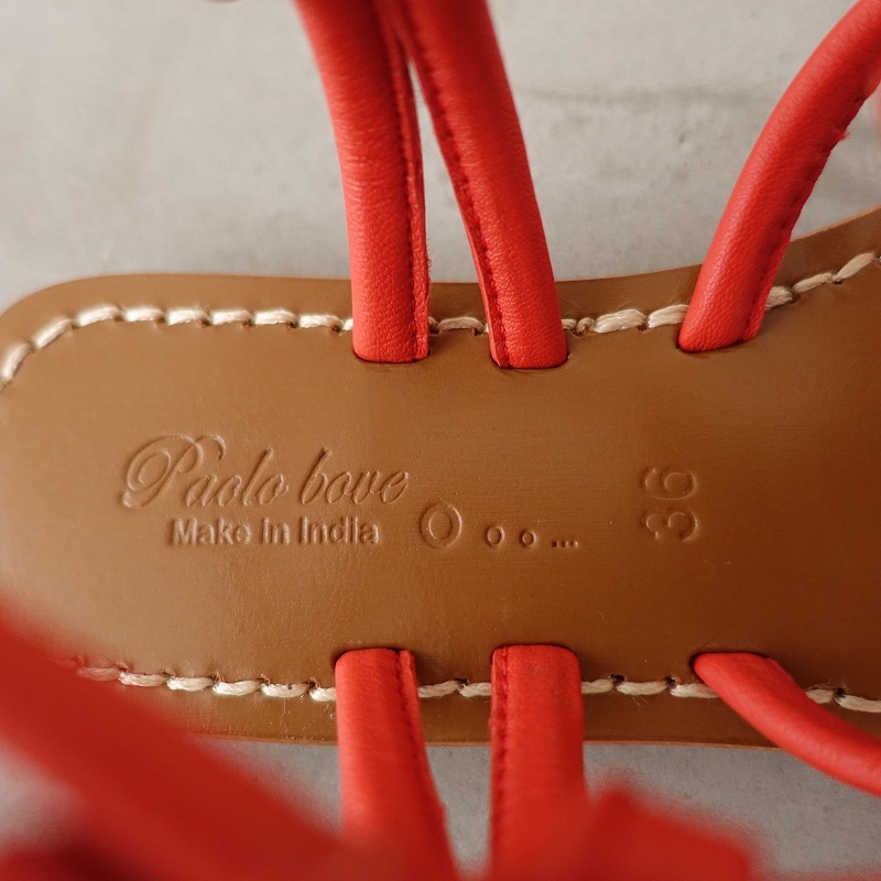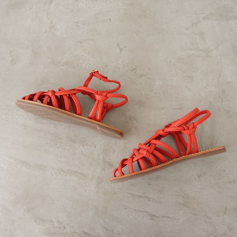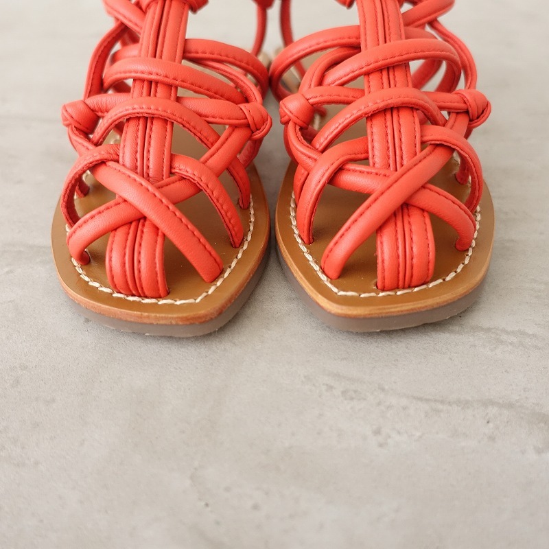 | 2024年SSコレクション、PAOLO BOVEのレザーレースアップストラップフラットサンダルです。カラーは赤みがかったオレンジ(表記はレッド)で素材はレザー、5段階に調節可能なストラップで着脱していただけます。 |