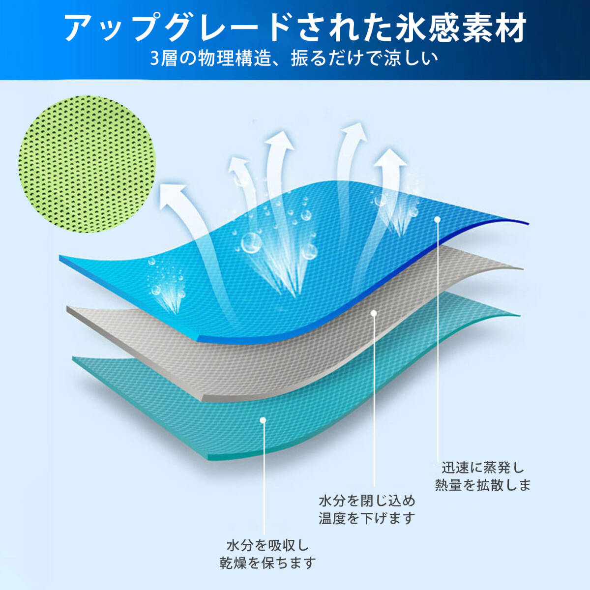 | 製品について | 【極限吸水】超強力な吸水性で、ドライな状態を保ち、快適な使用が可能です 【効果的な吸着】強力な吸着力で、汗やほこりなどの物質をフィルタリングし、効果的に消臭します 【涼しい通気性】高密度の冷感生地を使用しており、水を浸すだけで、軽く絞った後、振ること5-8回で涼しい快適さを体感できます |