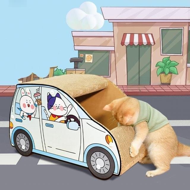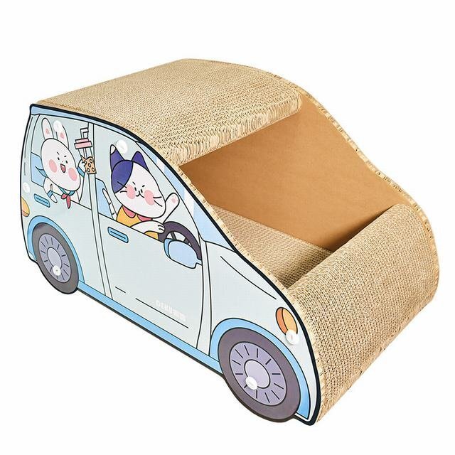 猫ハウス 猫小屋 SUV車形段ボール こペット用品  キャットダンボールハウス 猫用爪とぎ ペットハウス 爪とぎ兼ベッド ホワイト