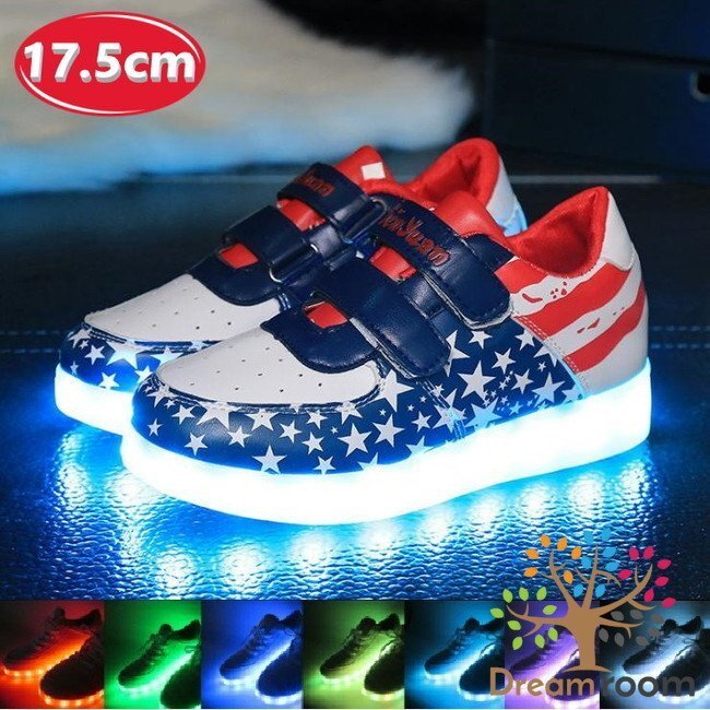 1スタ☆kids 7色に光る☆LED ライトアップ スニーカー 【アメリカン 17.5cm】 韓国子供服 キッズ シューズ 子供用 男女