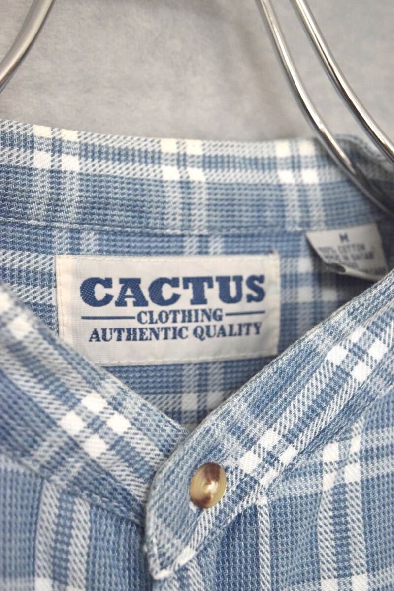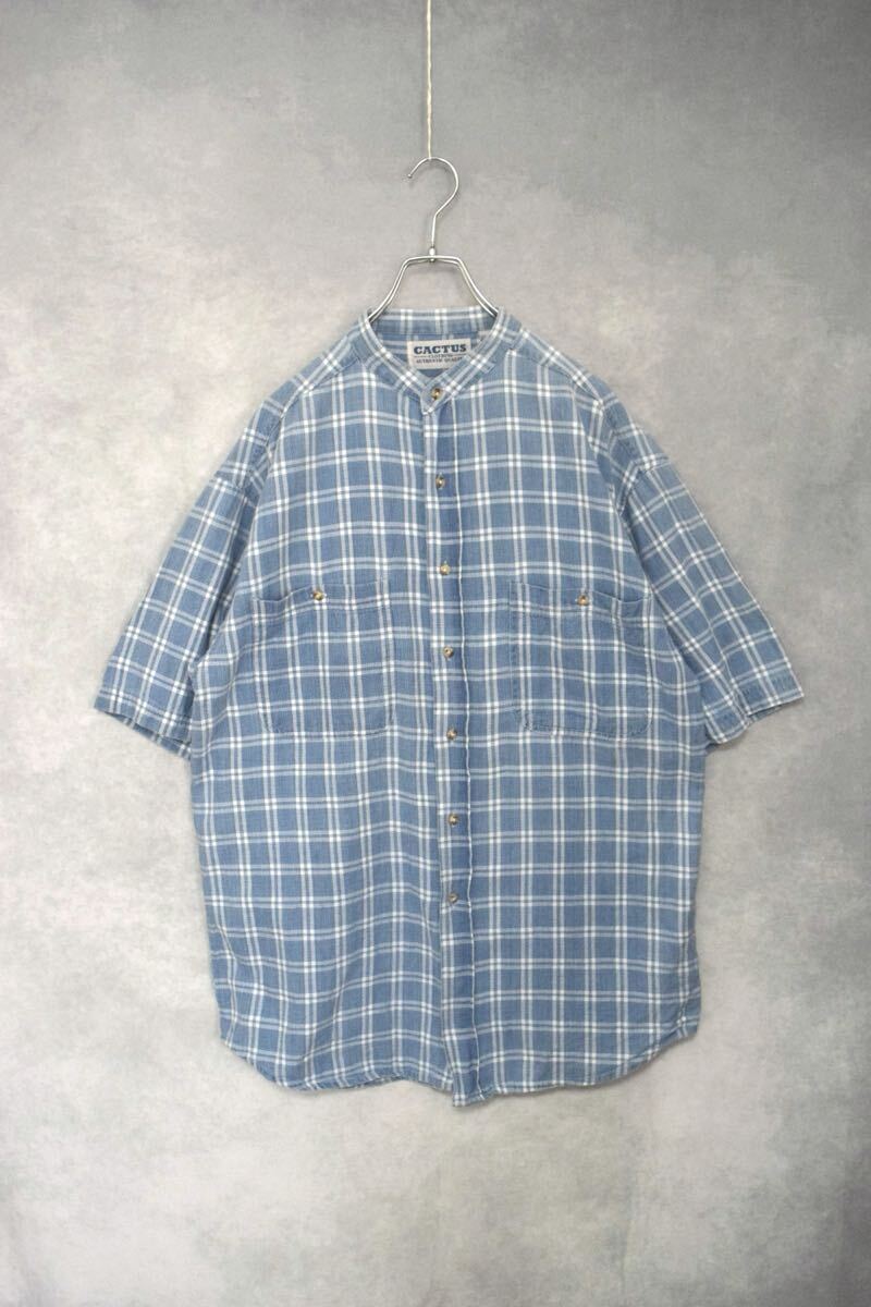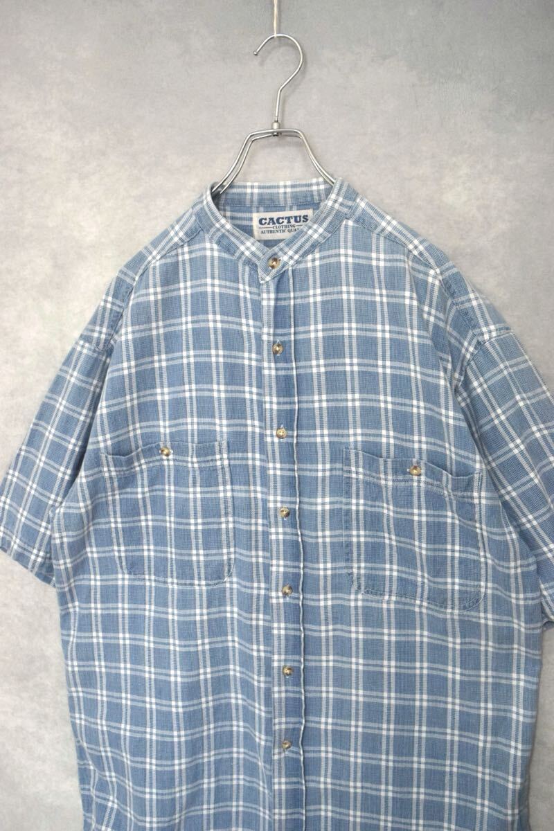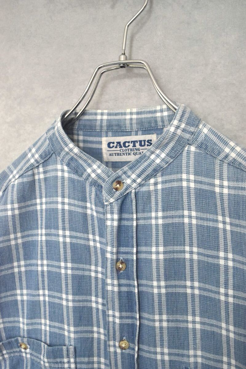 【 90s カクタス 】" cactus " コットン スタンドカラー シャツ / size ML / 90年代 バンドカラー チェックシャツ