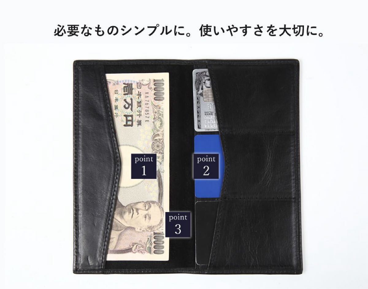 シンプルかつ高機能。厚さ5mm・重さ約30gの超スリム長財布です。
