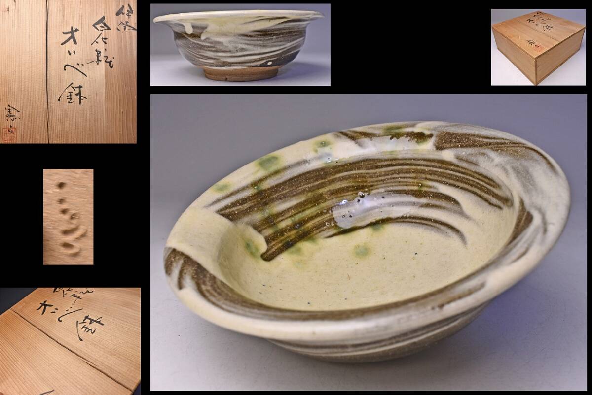 サイズは 212mmx高さ75mm です。 伊賀の 人気陶芸家 小島憲二 氏の 作品です。 木箱の蓋に割れが見られます。ご了承ください。 宅配便80サイズにて発送します。 他にも多数出品してます。同梱対応いたします。