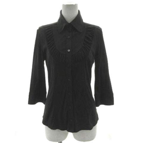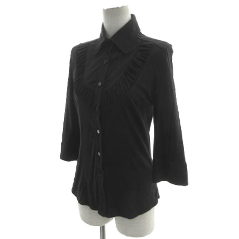 ナラカミーチェ NARA CAMICIE シャツ シャーリング 七分袖 シンプル 無地 ブラック 黒 1 レディース