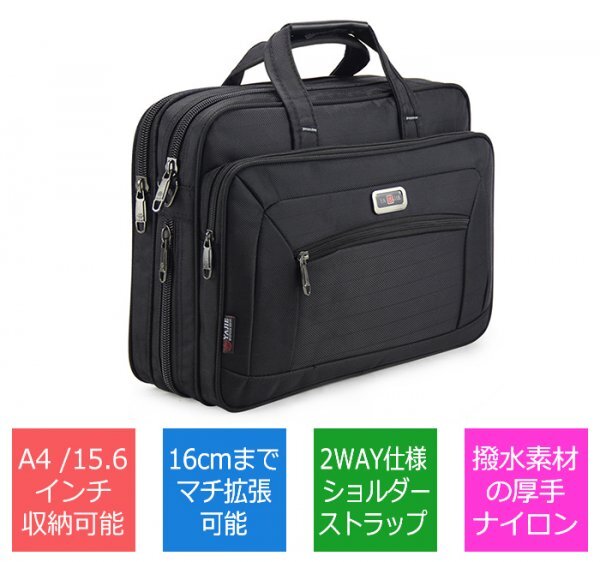 新品★即決 2way ビジネス バッグ PC ノート パソコン ナイロン かばん 肩掛け B4 サイズ 15 インチ 通勤 書類 鞄 手提げ ブラック 807za2