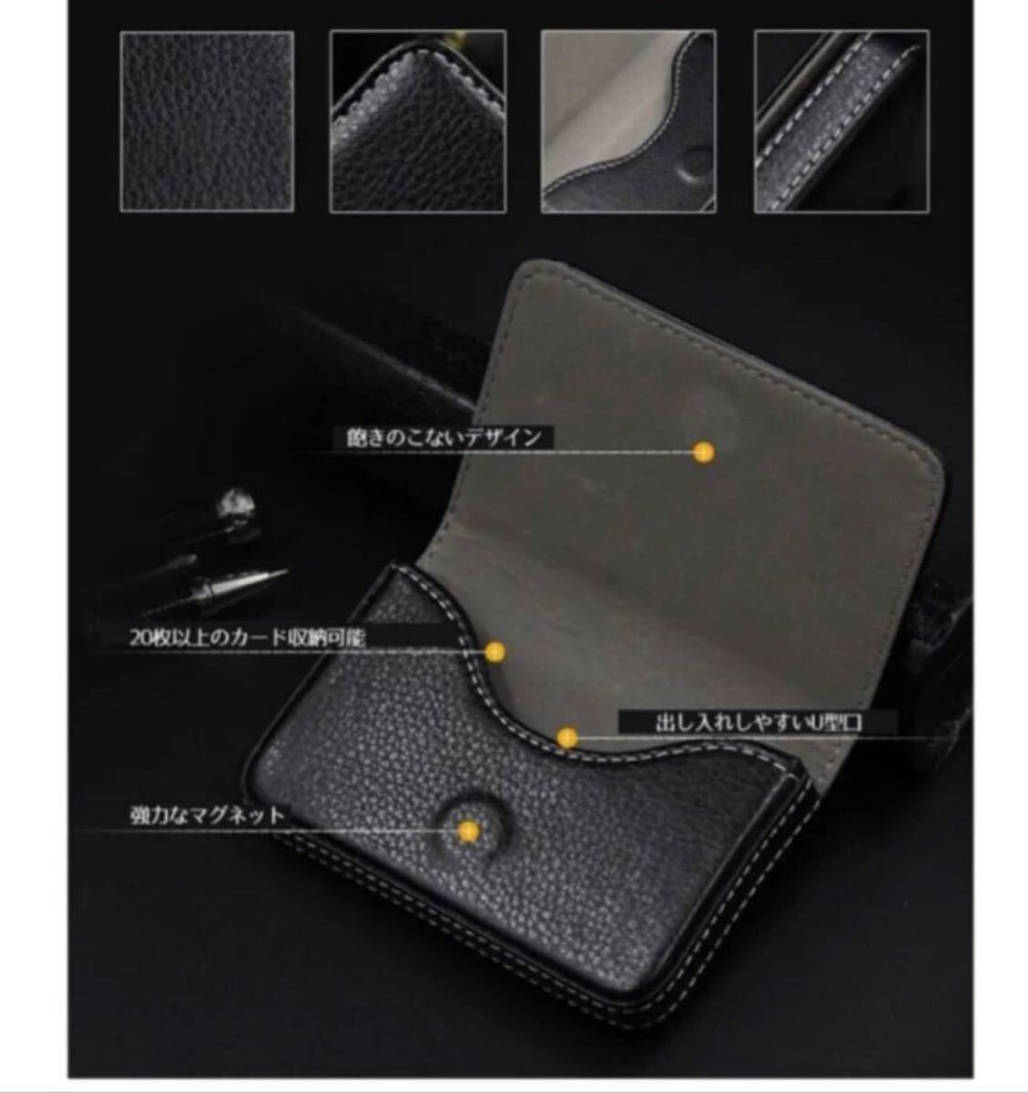 PUレザー素材のオシャレなデザインで高級感のある名刺ケース。