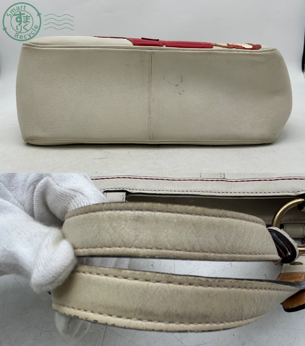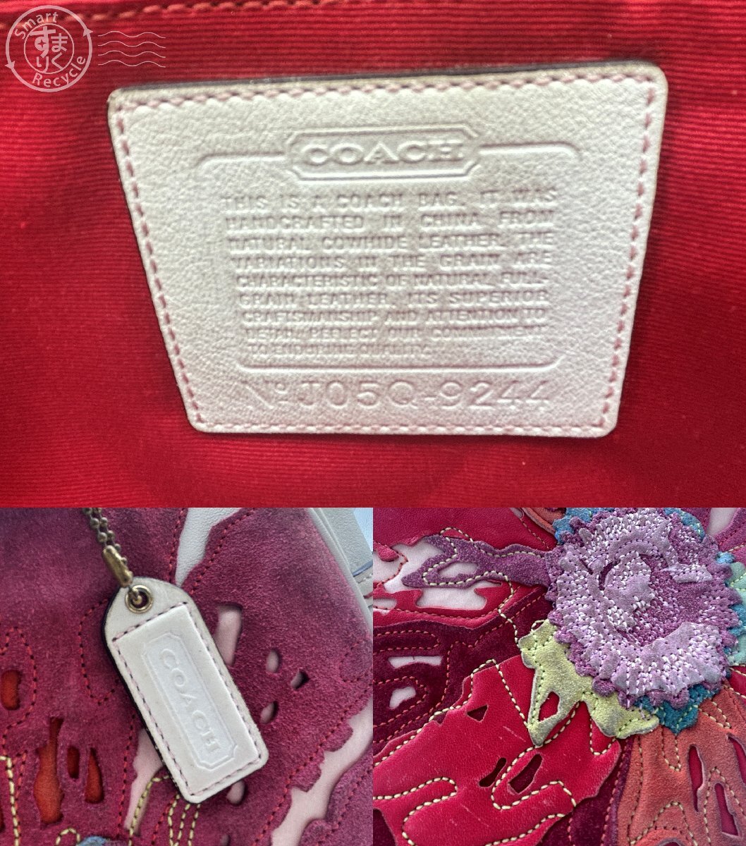 △ COACH コーチ 9244 レザー スエード ターンロック フラワー 花 トートバッグ 肩掛け アイボリー系 レッド系 中古品 used品 | |||