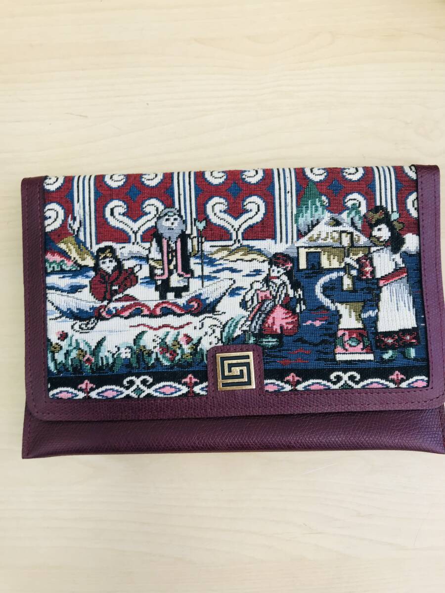 1円~ 北海道 アイヌ絵柄 美術ゴブラン織 クラッチバッグ 90年代