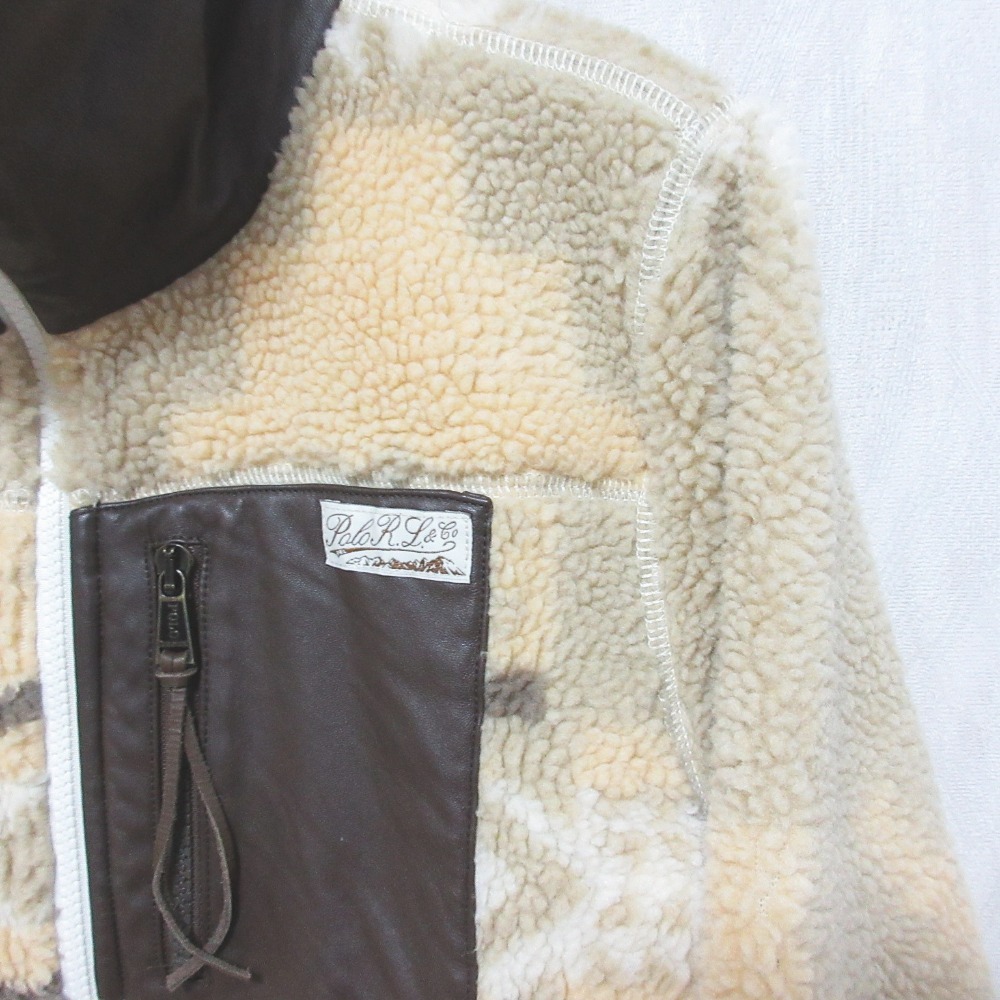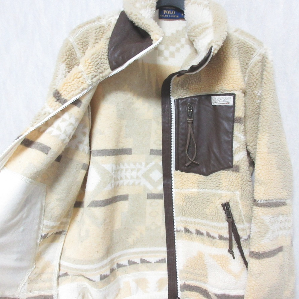 良品 POLO RALPH LAUREN ポロラルフローレン ネイティブ柄 レザー切替し ボアフリースジャケット SP ベージュ