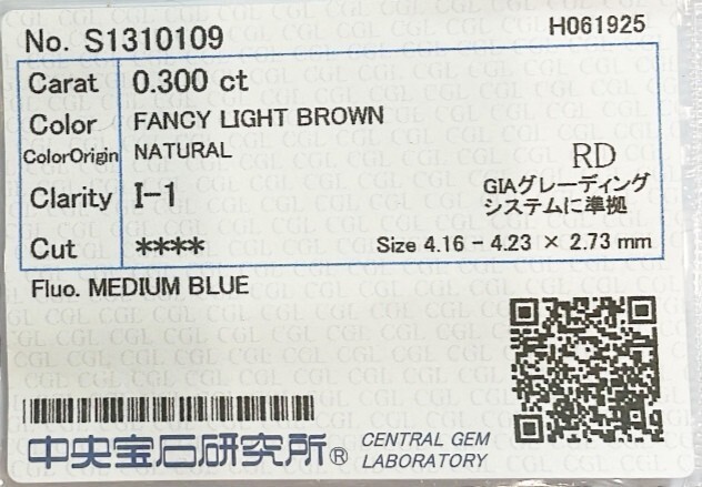 [アイテム名]天然ダイヤモンドルース 裸石 NATURAL DIAMOND D0.300ct FANCY LIGHT BROWN I1 sorting