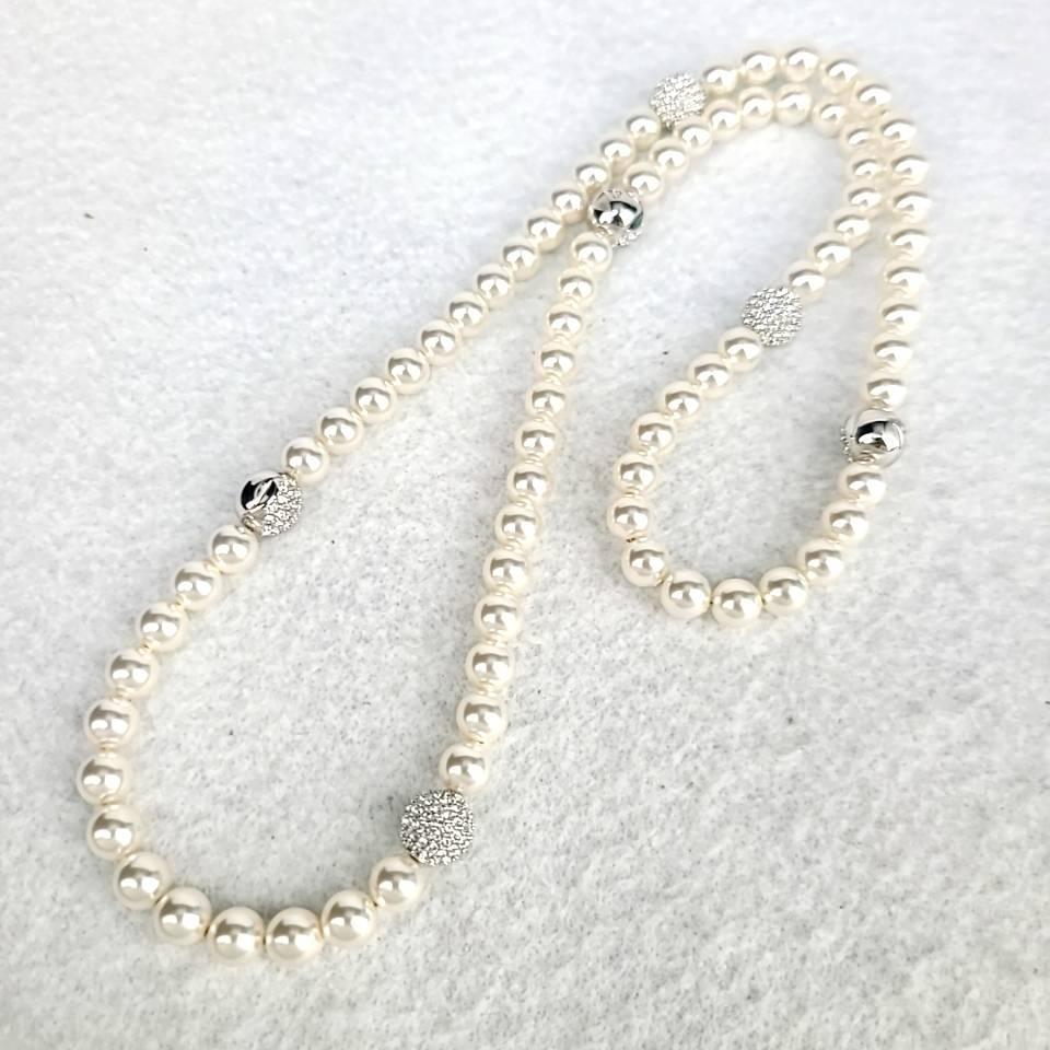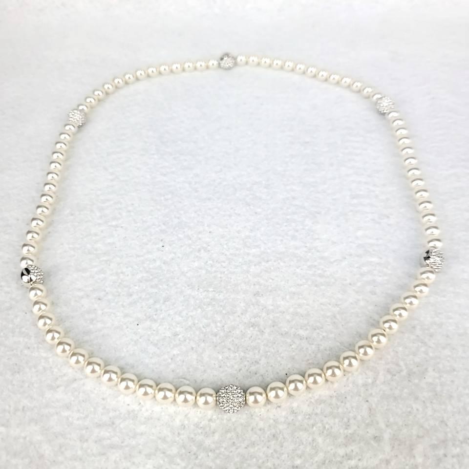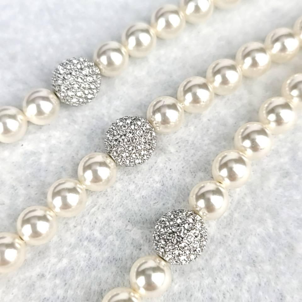 こちらは3つのパールのブレスレットを1つに連結しネックレスとしております。