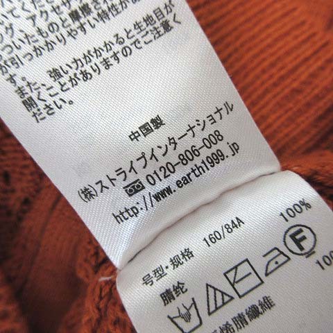 アースミュージック&エコロジー EARTH MUSIC & ECOLOGY カーディガン クロシェ ニット ショート丈 フレアスリーブ 7分袖 M テラコッタ