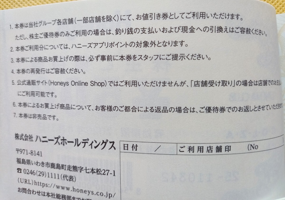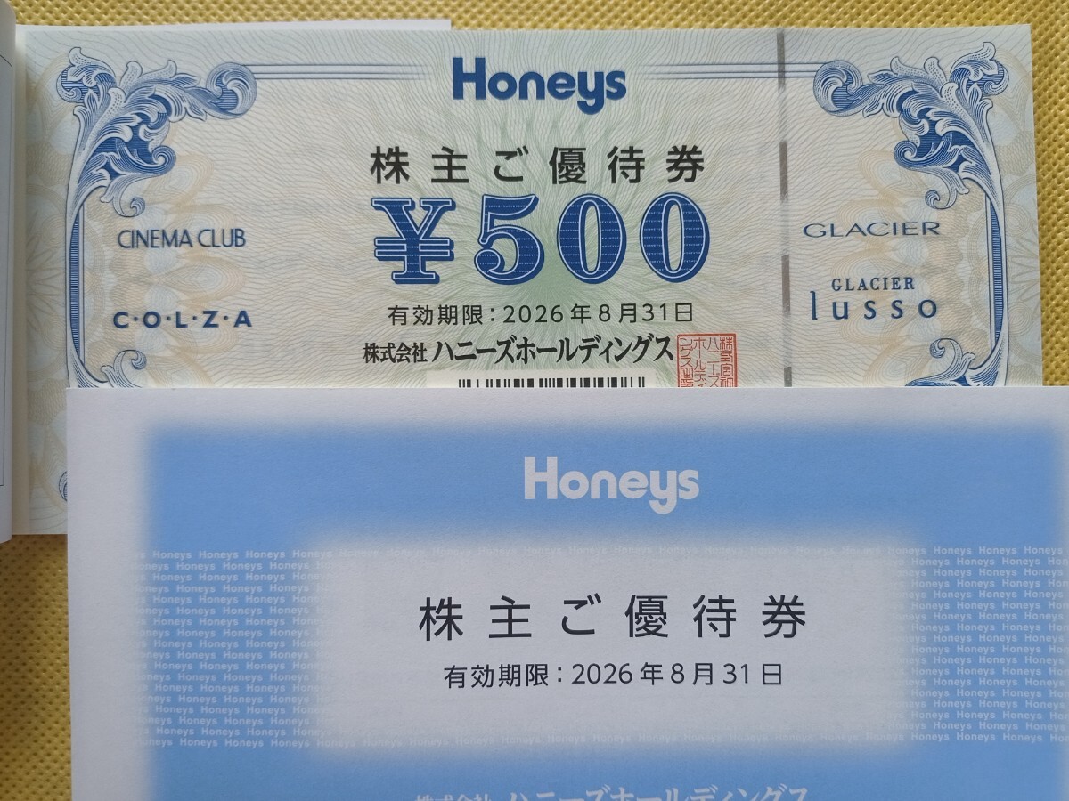 ハニーズの株主優待券9,000円分(500円×18枚)です。