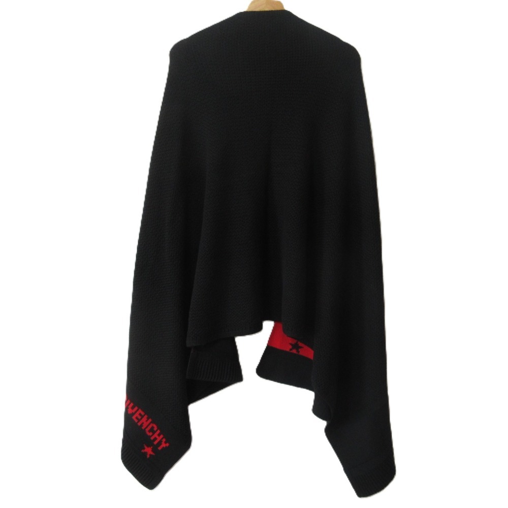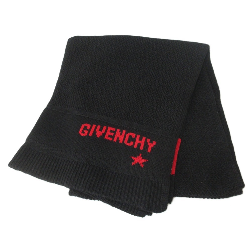 美品 GIVENCHY ジバンシィ ロゴ 大判 ニットマフラー ストール ショール ブラック×レッド