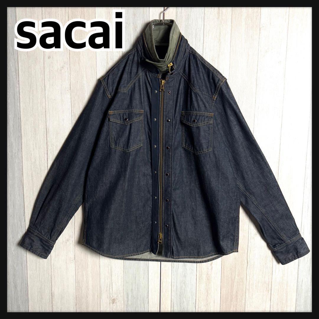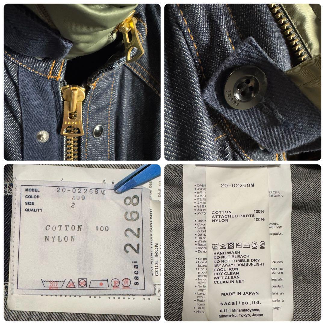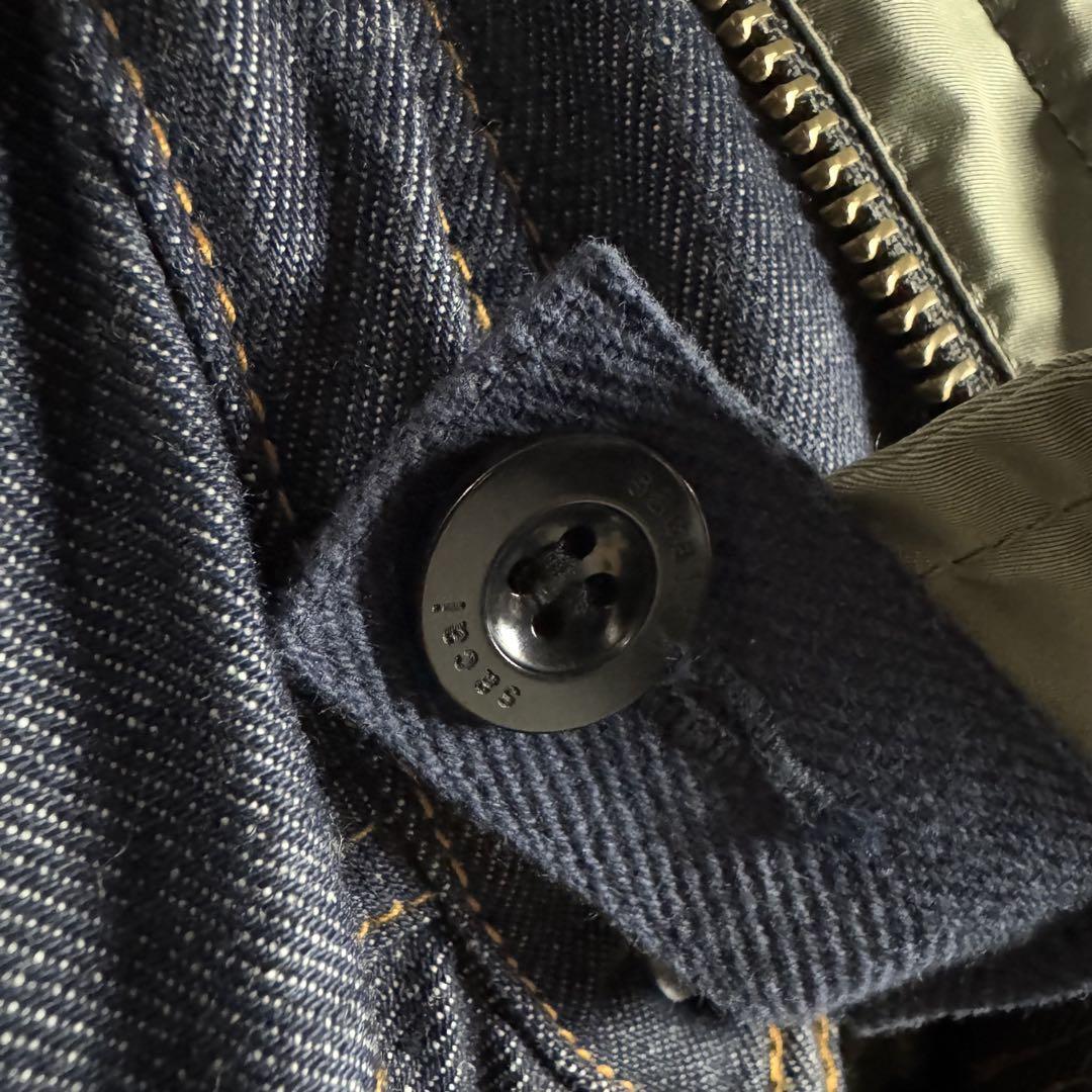 【希少デザイン・美品】sacai サカイ ナイロン 異素材切替 ドッキング デニムジャケット インディゴ・ブルー・ネイビー・紺 サイズ2