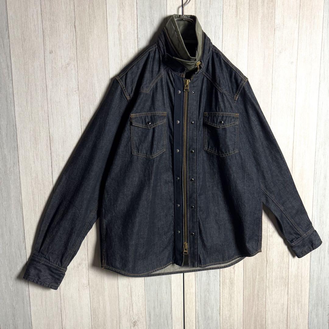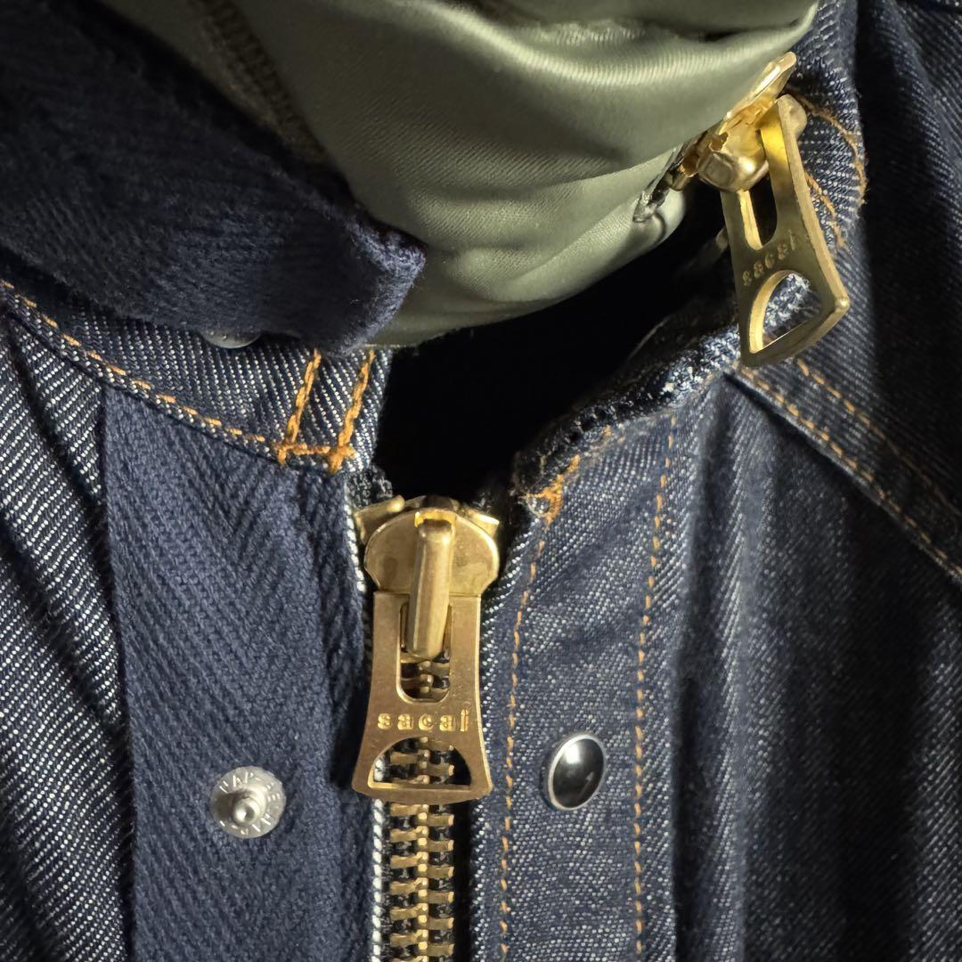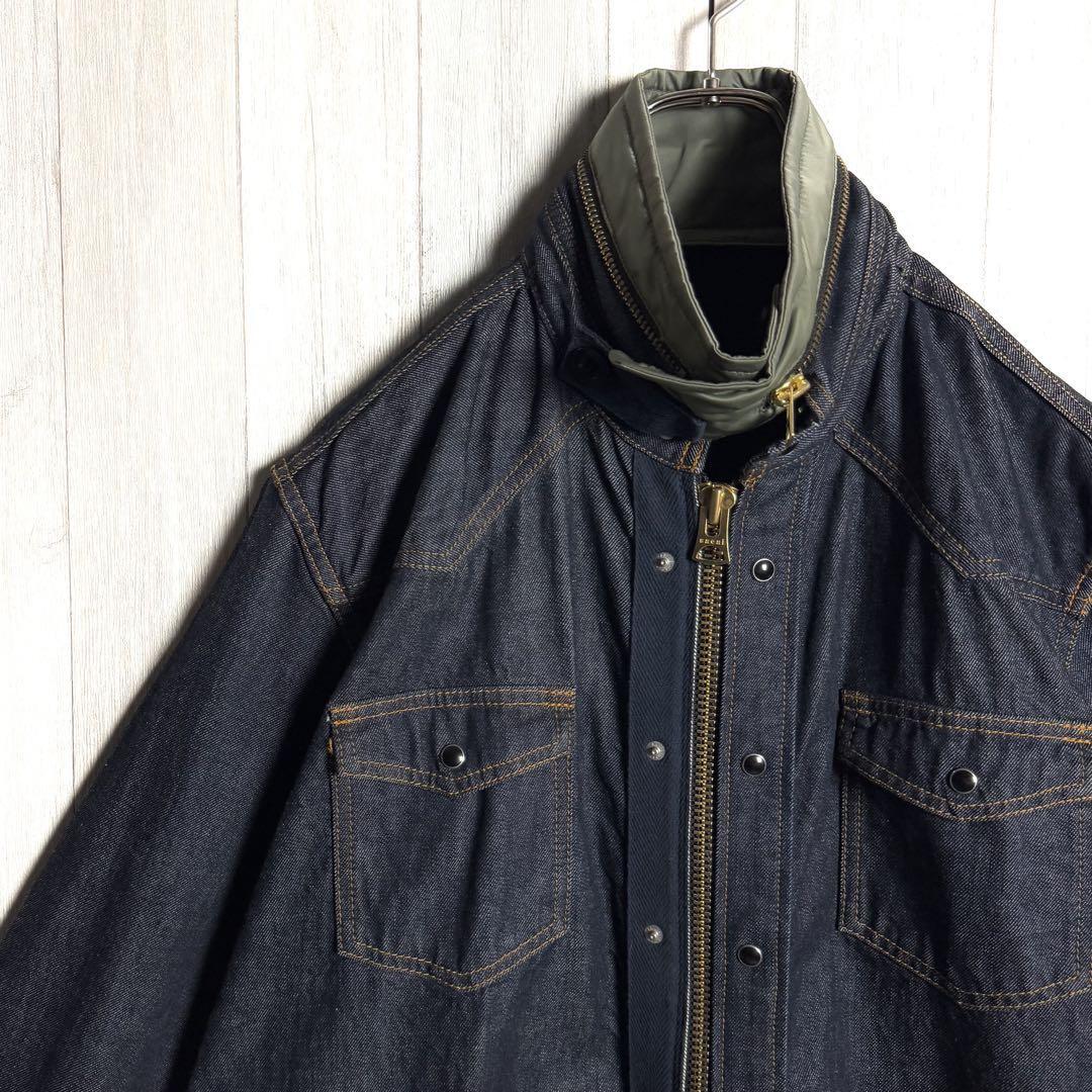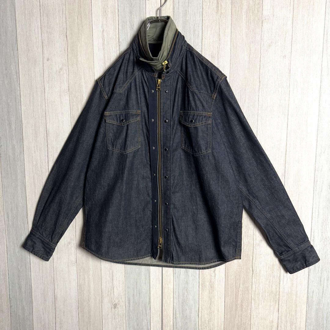 【希少デザイン・美品】sacai サカイ ナイロン 異素材切替 ドッキング デニムジャケット インディゴ・ブルー・ネイビー・紺 サイズ2