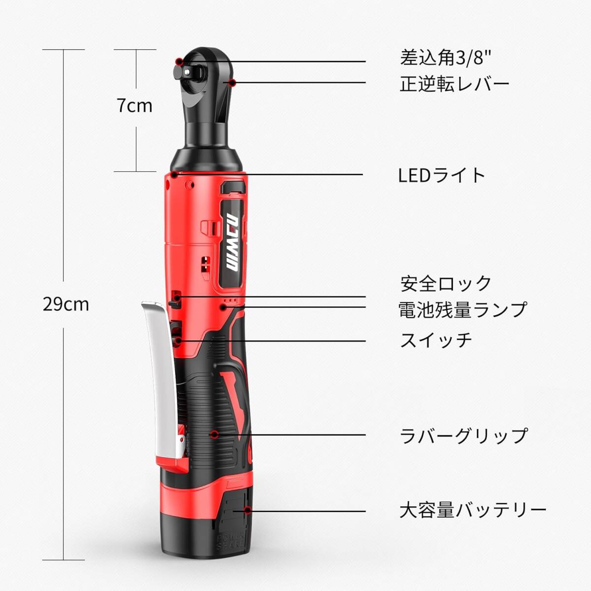 充電式ラチェットレンチ 16.8V コードレス 電動 ソケットレンチセット ガレージツール 足場の組立 自転車修理 LEDライト 工具革命到来