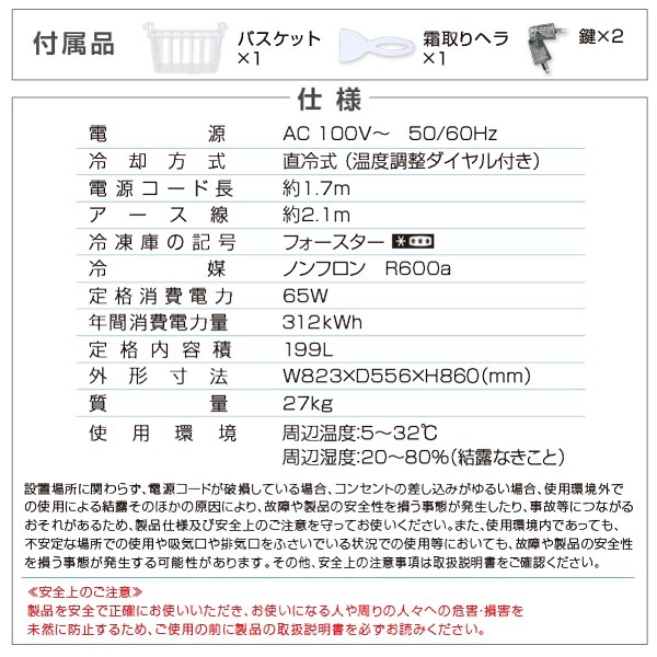 【便利な収納用バスケット】よく使う食材やドリンクは上段のバスケットへ。仕分けがしやすく、必要なときにサッと取り出せて便利です。※ 包装されていない食品を直接収納用バスケットに接触させないようご注意ください。