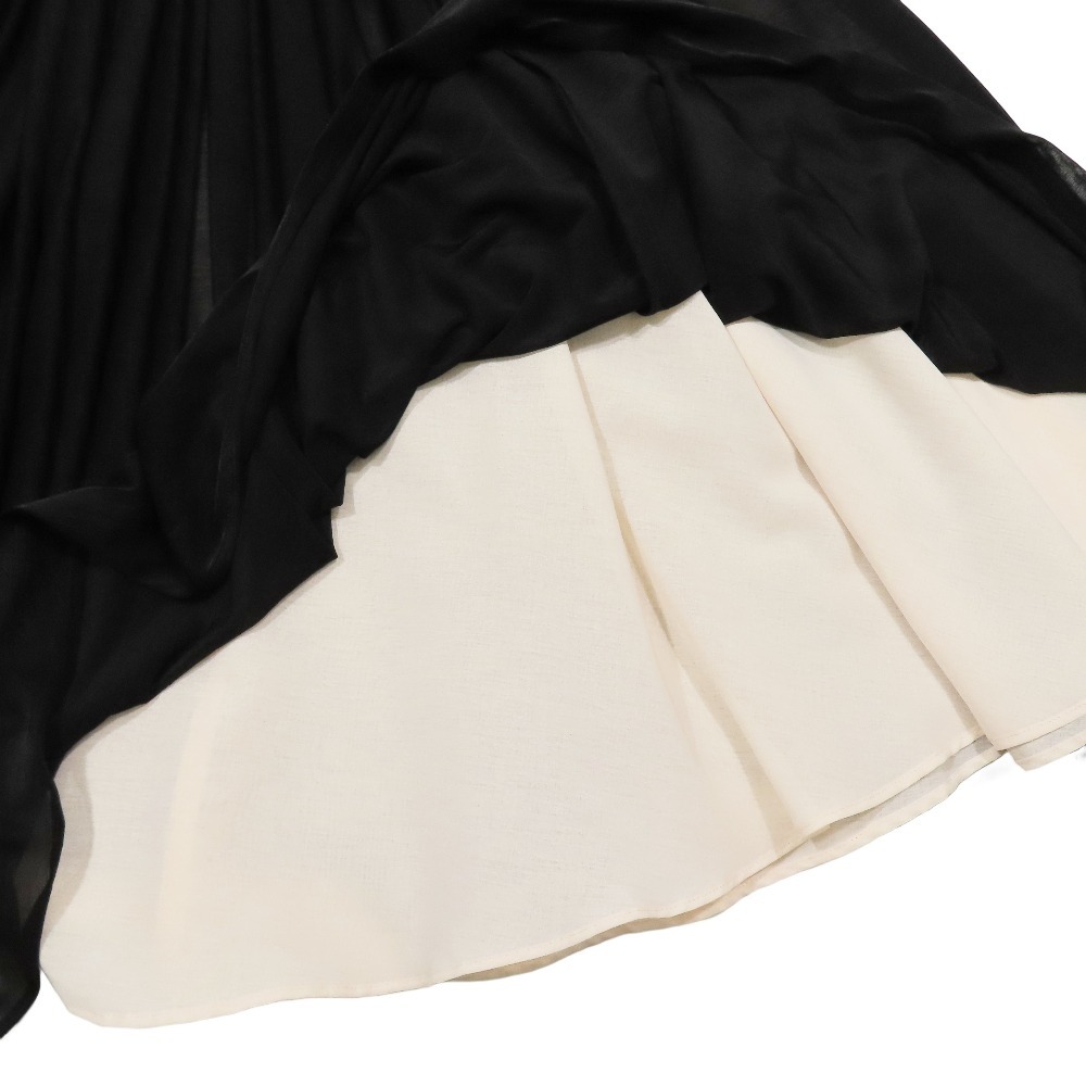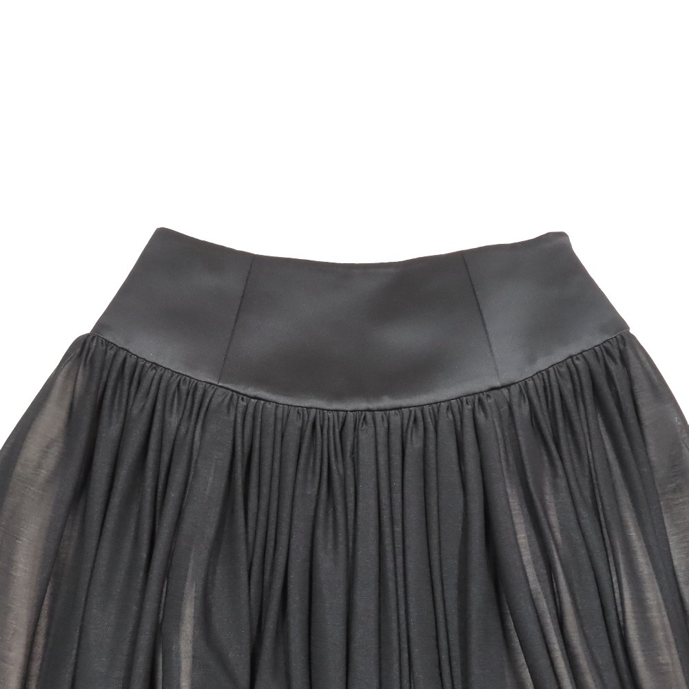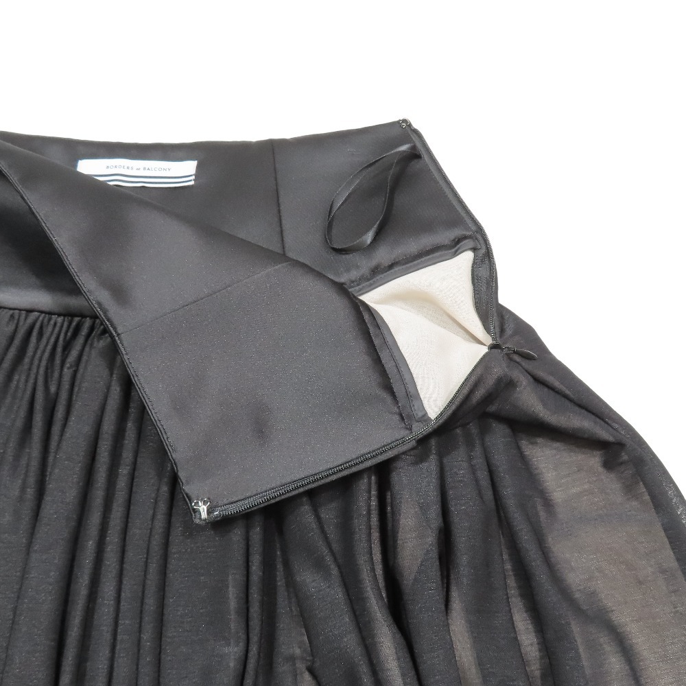 新品同様 24AW BORDERS at BALCONY ボーダーズアットバルコニー シフォン フレアスカート ギャザー ハーフ 膝丈 36 ブラック ピンク