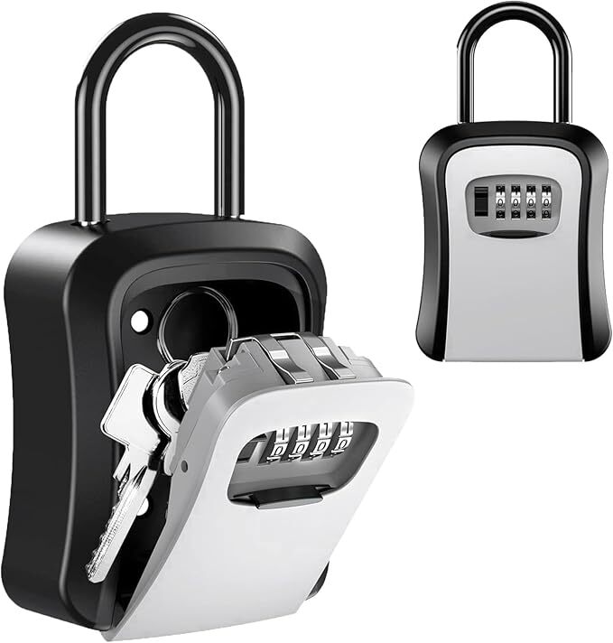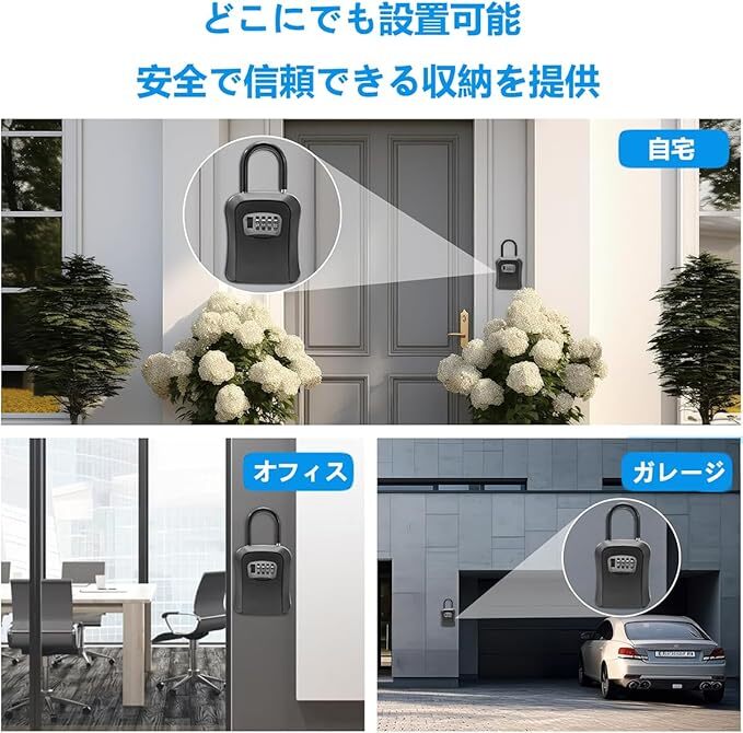 Amazon | セキュリティキーボックス ダイヤル式4桁パスワード 鍵収納ボックス 合金素材 防犯・盗難防止 屋外防水&耐候性 大容量5キー収納 壁掛け設置 インストール不要 リセット可能 オフィス/倉庫/車/玄関/別荘/アパート用 (グレー)