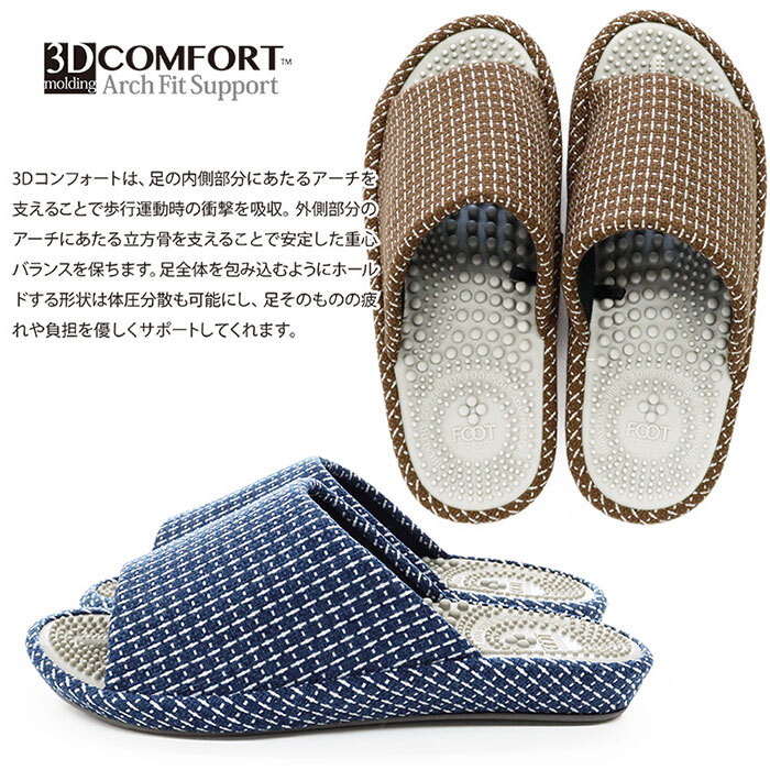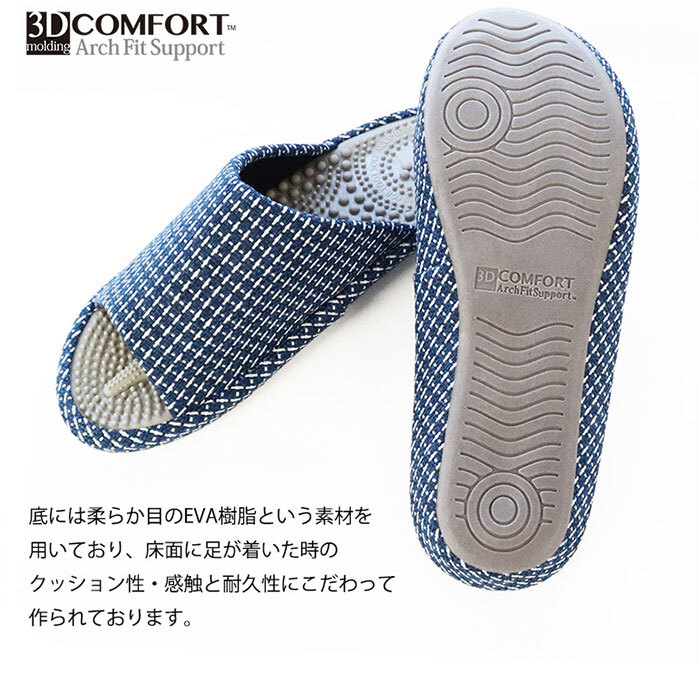 | 商品説明 | ・・【3Dコンフォートとは?】 ・足裏のアーチに沿った3次元形状の設計により、足に優しく快適な室内履きとして開発 ・【歩行運動時の衝撃を吸収】 ・足裏の内側部分にあたるアーチを支えることで歩行運動時の衝撃を吸収。 ・【重心バランスをキープ】 ・外側部分のアーチにあたる立方骨を支えることで安定した重心バランスをキープ。 ・【体圧分散で足の負担を軽減】 ・体圧分散により、足裏の負荷をバランスよく分散。足の疲れや負担を優しくサポート。 ・【適度な硬さで心地よい刺激】 ・突起部分が足裏に刺激を伝え、適度な硬さと弾力性のある素材の凸凹が心地よい刺激を実現。 ・【指まくらと横のアーチを指圧】 ・指のつけ寝と横のアーチを指圧。外反母趾やモートン病予防に良いとされています。 ・【外側のアーチを指圧】 ・O脚や膝の痛みに良いとされています。 ・【内側のアーチを指圧】 ・偏平足や足の疲れに良いとされています。 ・【負荷なく着地できる】 ・底には耐久性に優れ、柔らかめのEVA樹脂を採用。床に着地時のクッション性と感触が◎ |