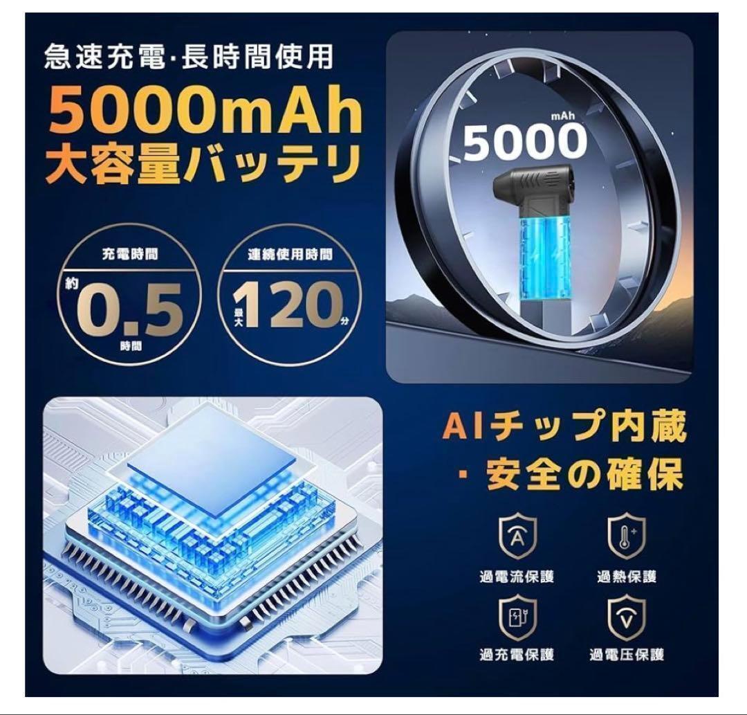 [Feethit] 電動エアダスター 強力 200000RMP高速回転 4時間使用 5000mah大容量バッテリー