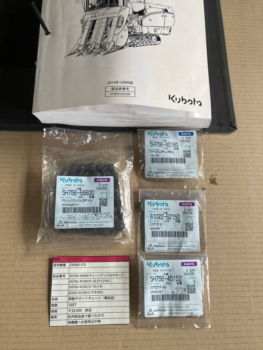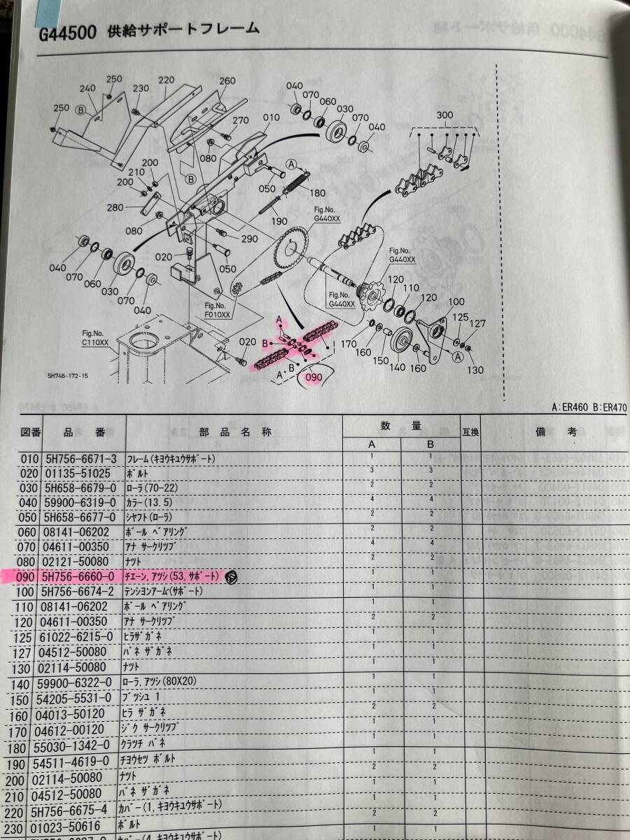 製品名:供給サポートチェーン(構成品) 部品番号: 5H756-66600(チェーンアッシ53サポート) 5H756-45180(カラー22.2*1.2*8L) 5H756-45152(スプロケット 8 61022-62150(ヒラザガネ) 状態:新品 個数:1SET(写真内全て) 適用機種:ER460.470 備考:社内部品表で確認したので、他機種への使用可能判断は部品番号で確認をお願い致します。