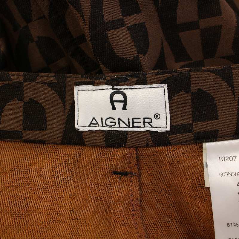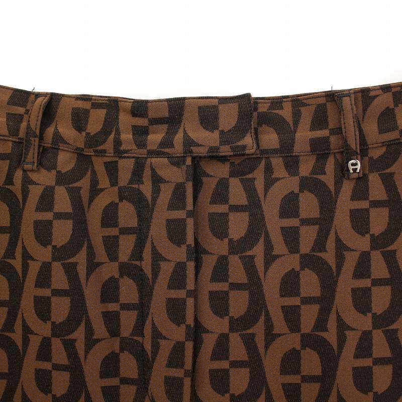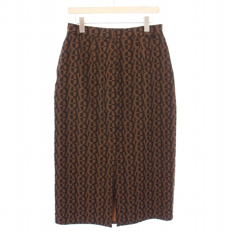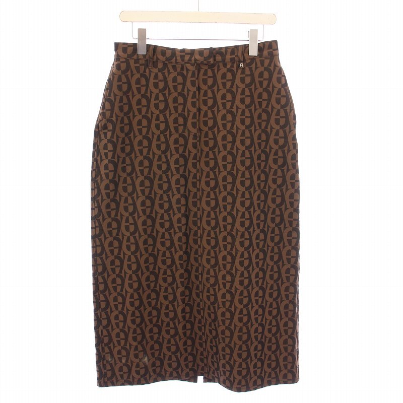アイグナー AIGNER タイトスカート ミモレ ロング ジップフライ ストレッチ スリット 総柄 I44 茶 ブラウン /BB レディース