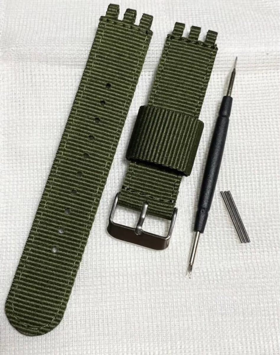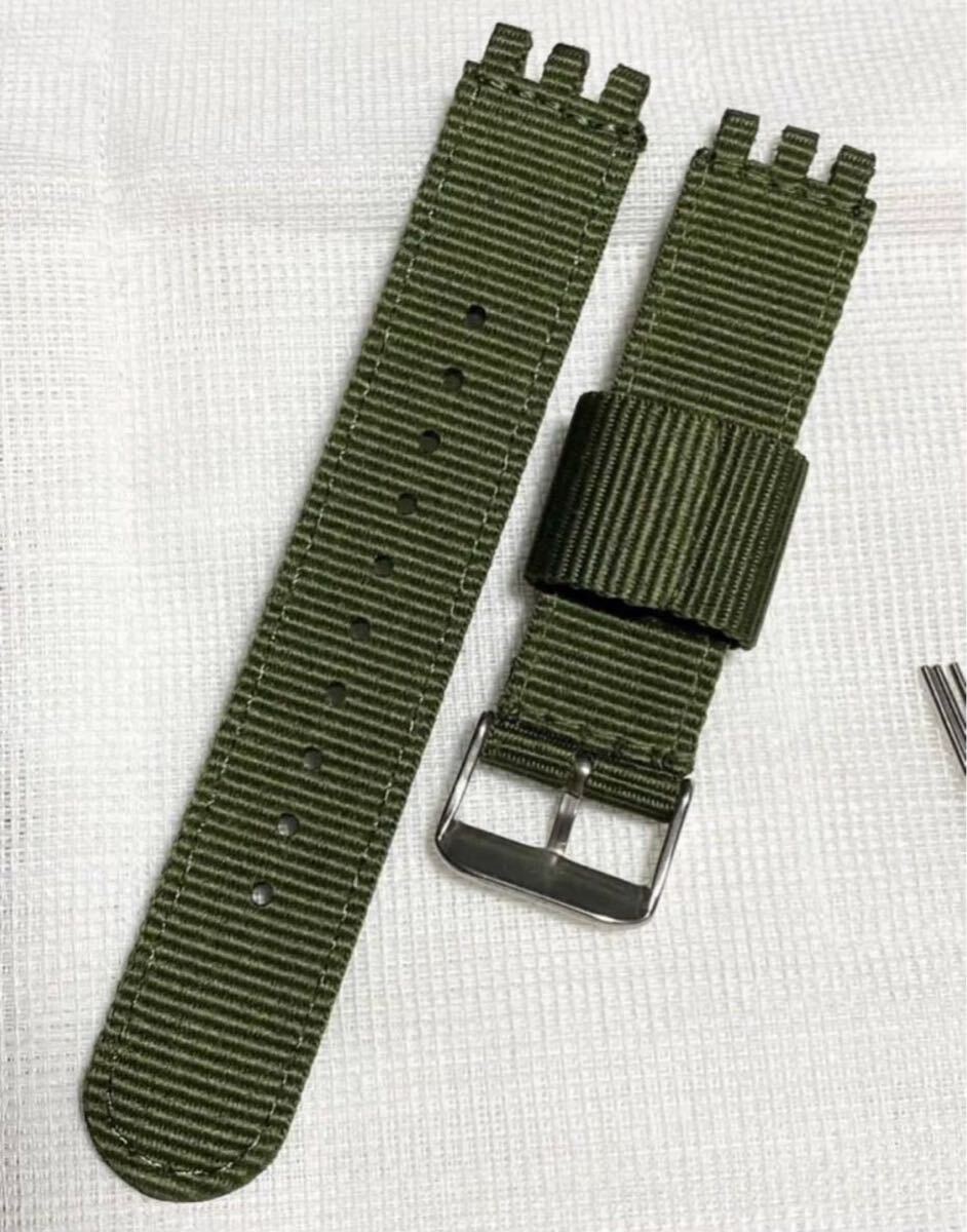 【17mm】新品!SWATCH スウォッチ用 ナイロンバンド アーミーグリーンです。