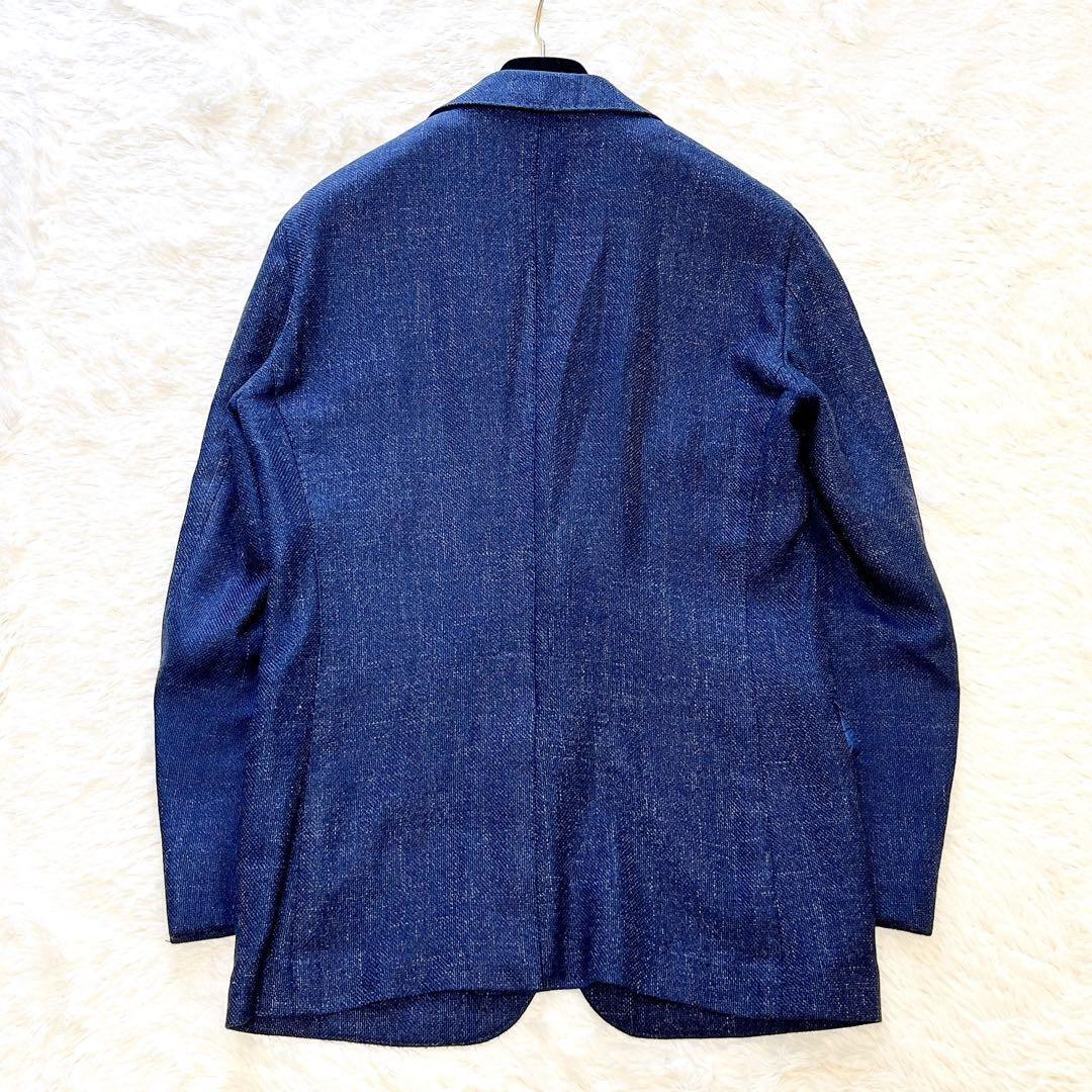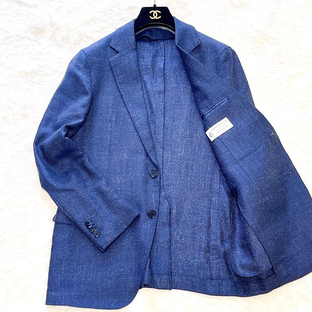 20SS トゥモローランド ピルグリム PILGRIM ロロピアーナ テーラードジャケット アンコン 背抜き LINEN TWEED ウール シルク リネン サマーツイード ホップサック 本切羽 2B ビジネス カジュアル シングルジャケット M位 46 ネイビー 2020年