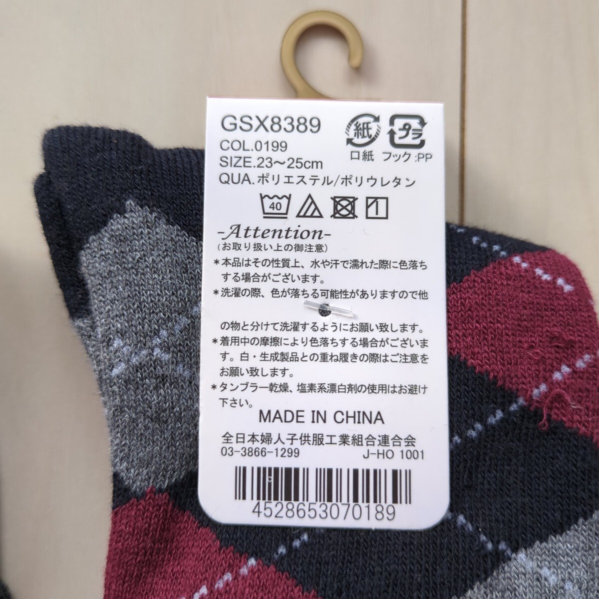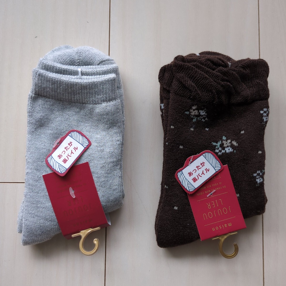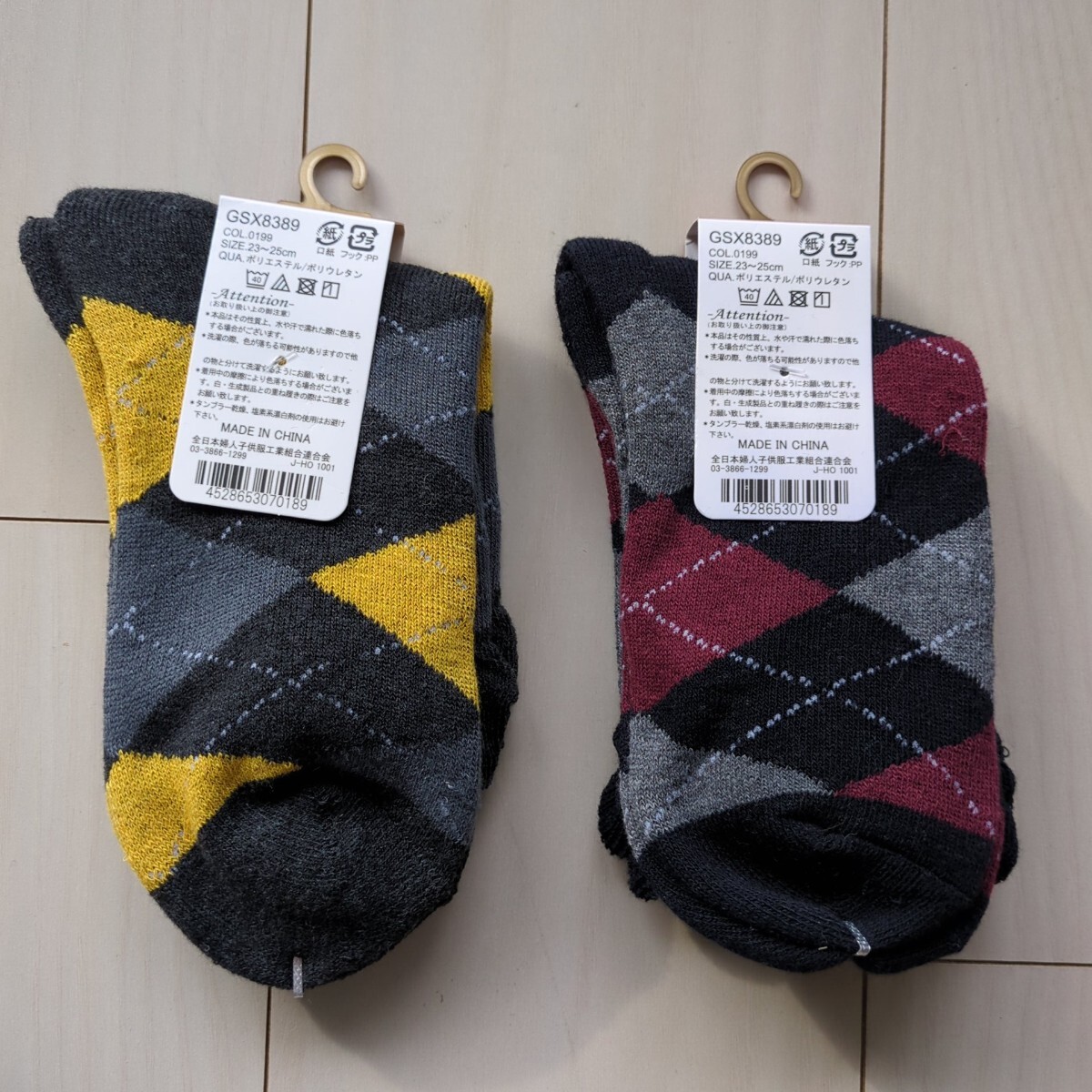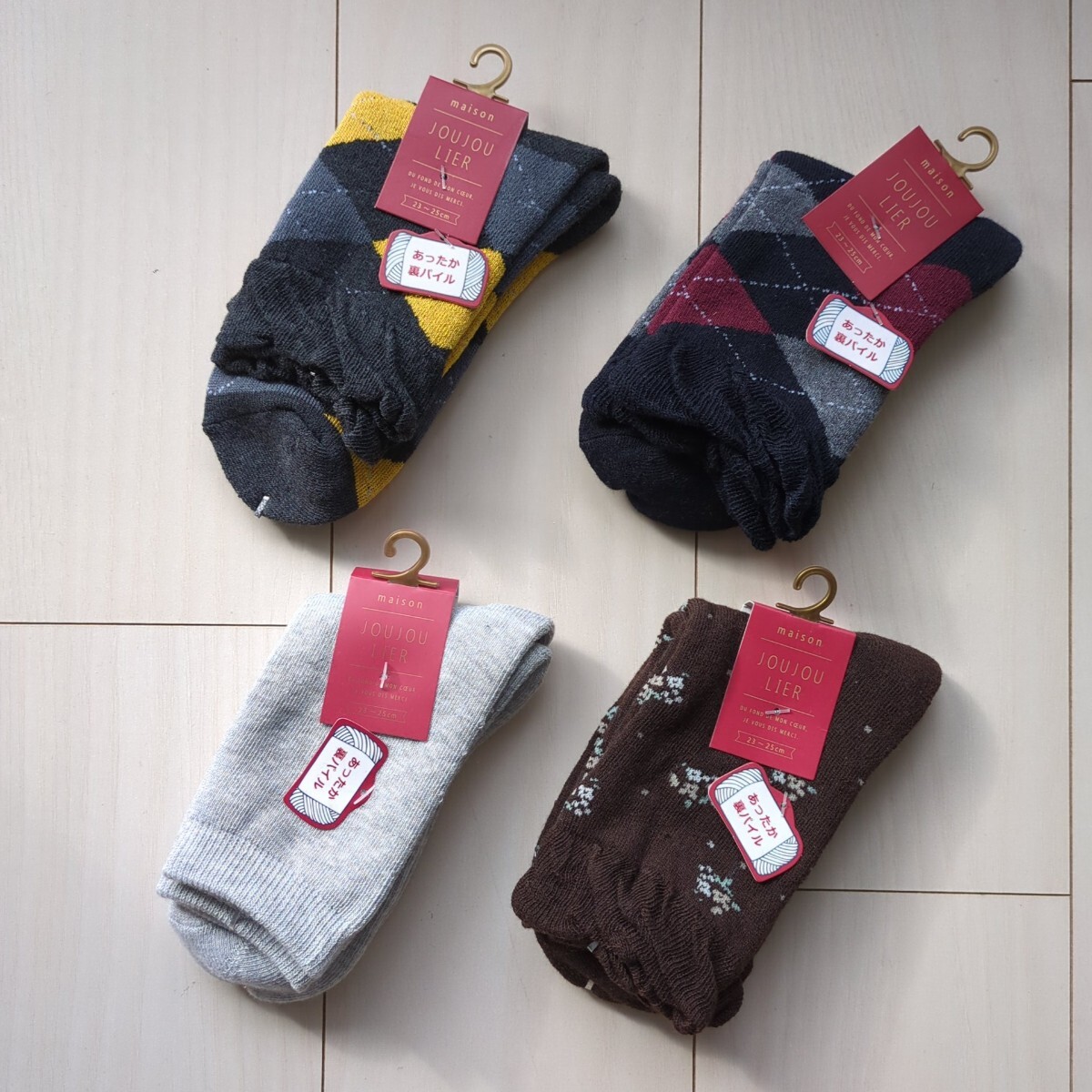 アーガイル柄、花柄、グレー無地の4枚セットです。