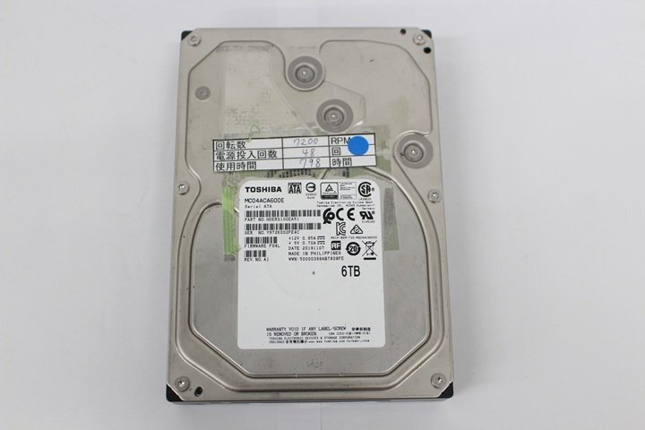 | 商品説明 | 3.5 SATA 6TBです。 TOSHIBA MC04ACA600E 回転数 7200RPM 電源投入回 48回 使用時間 798時間 データ消去済みです。 CrystalDiskInfoで正常判定です。 中古品ですので使用に対する傷や汚れはあります写真でご確認ください。 |