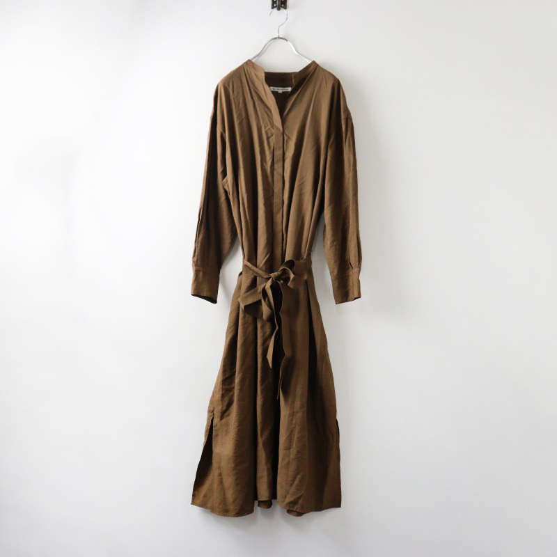 大きいサイズ 23区 オンワード樫山 洗える レーヨンソフトツイルロングシャツドレス 44|ブラウン フレア ワンピース【2400014562941】