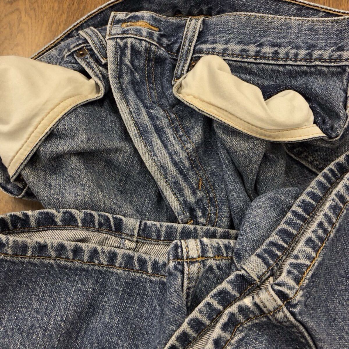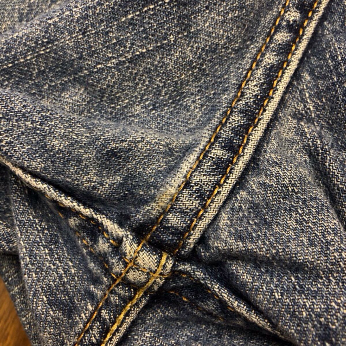 ●ウエスト→フロントボタンやジップは閉じ、ウエストの表中心と後ろ中心を合わせて机や床など平面な場所に置き、フラットに測れるよう生地を軽く手で押さえ、平置きしたパンツの左右端の最上部を計測、実寸した数値×2の表記をしてます。
